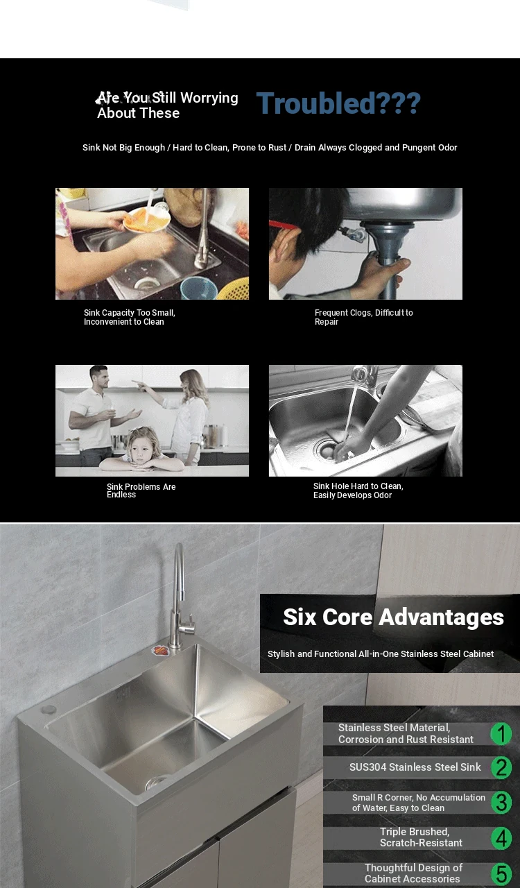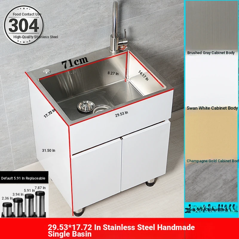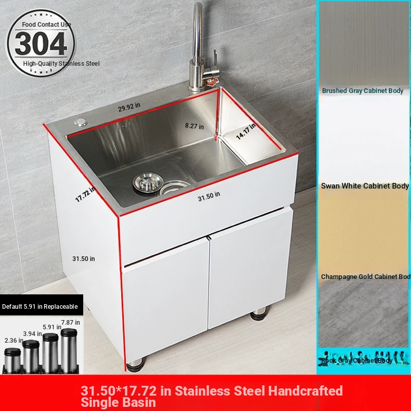 304 Stainless Steel Laundry Sink - Indoor & Outdoor Utility Wash Basin, Perfect for Balconies and Kitchens, Ideal for Vegetable Washing & Storage