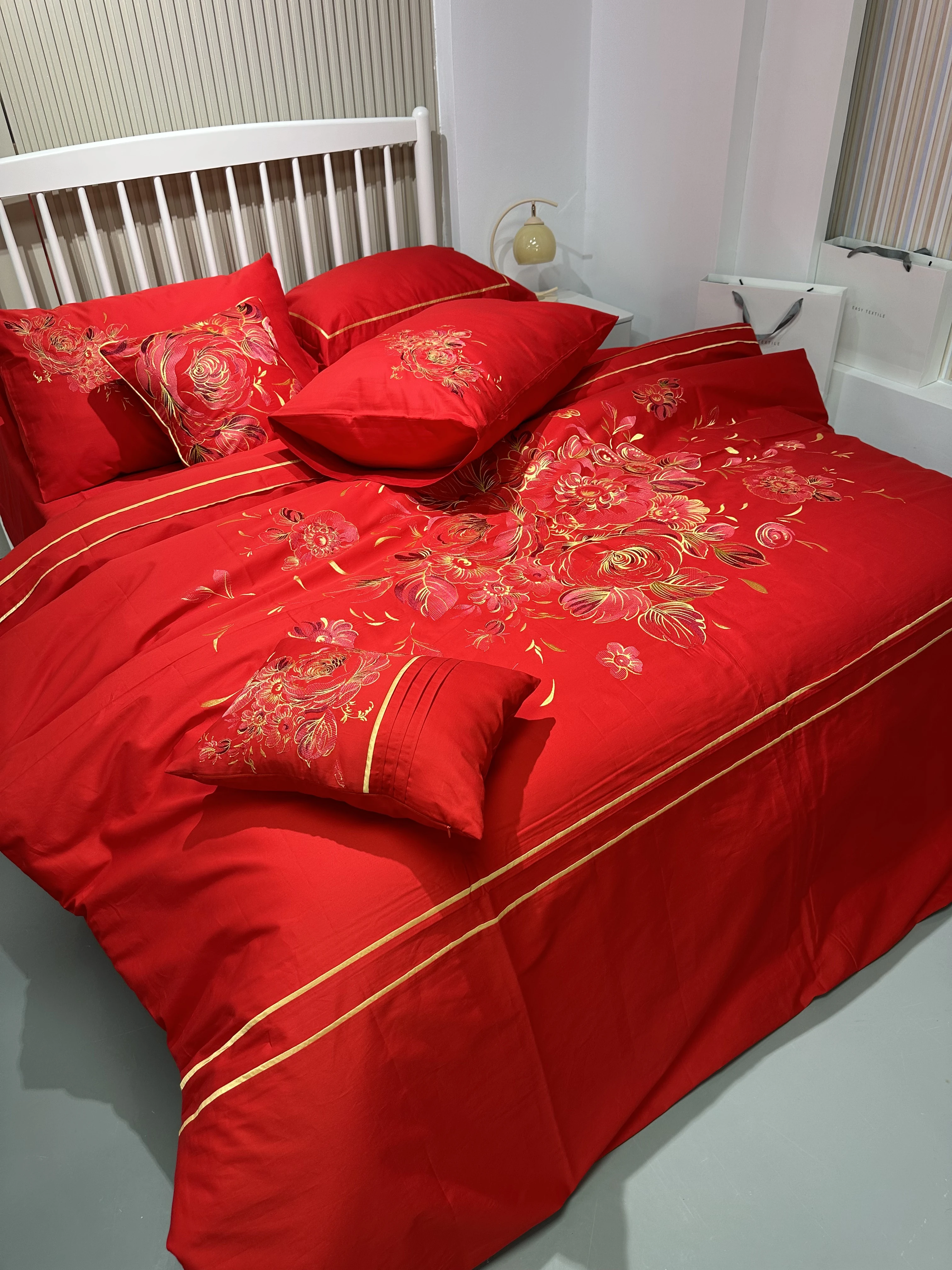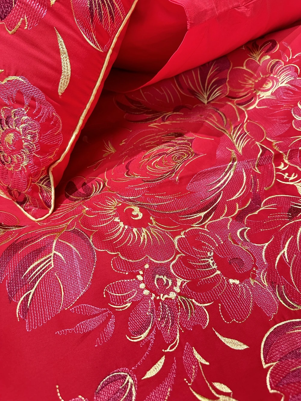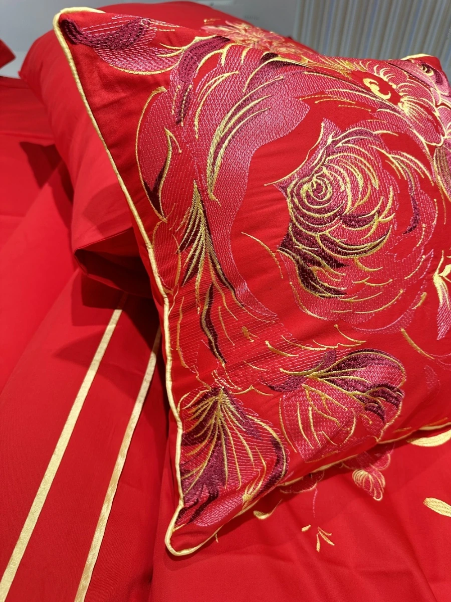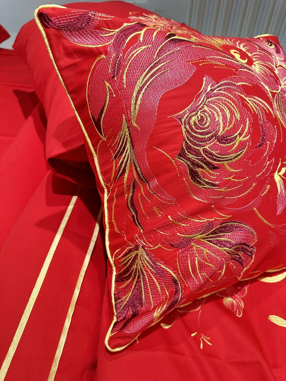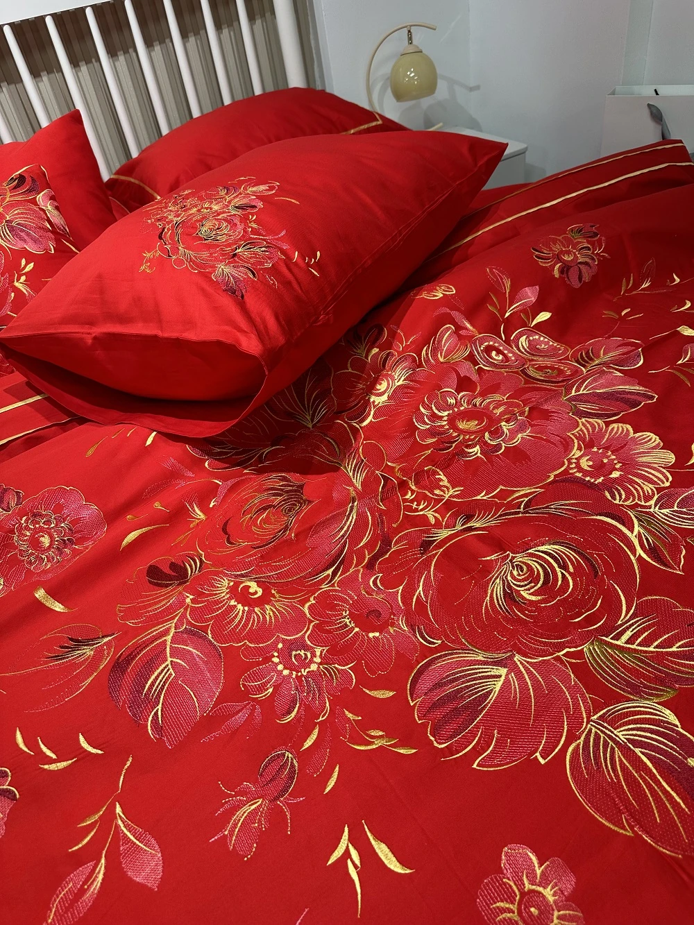 EASY Bedding Luxury Red Embroidered Floral Cotton Wedding Bedding Set (4-8 Pieces) – Original Design for a Glamorous Celebration