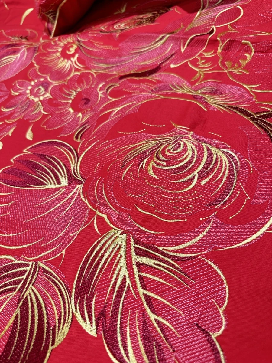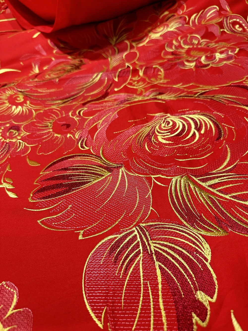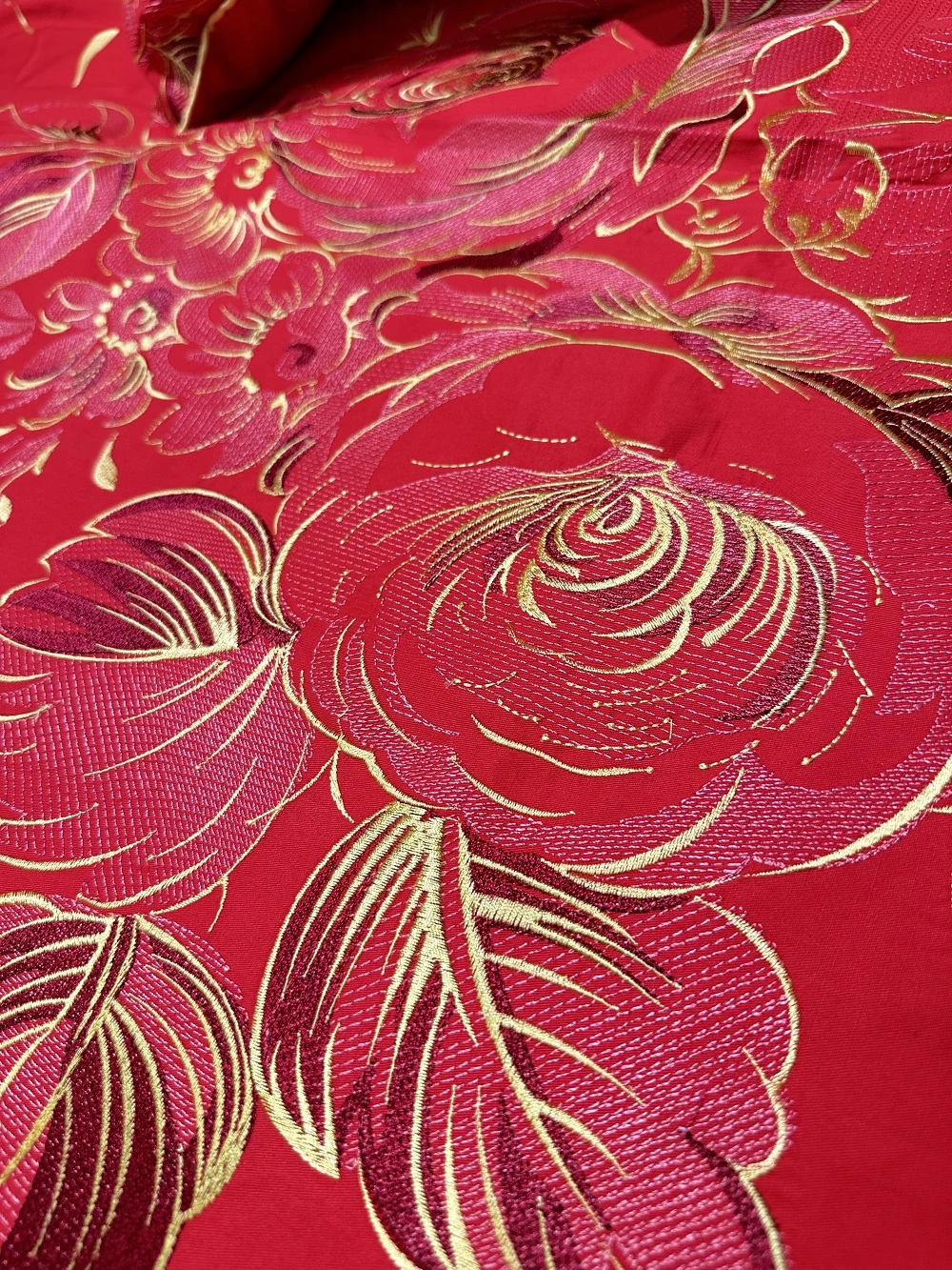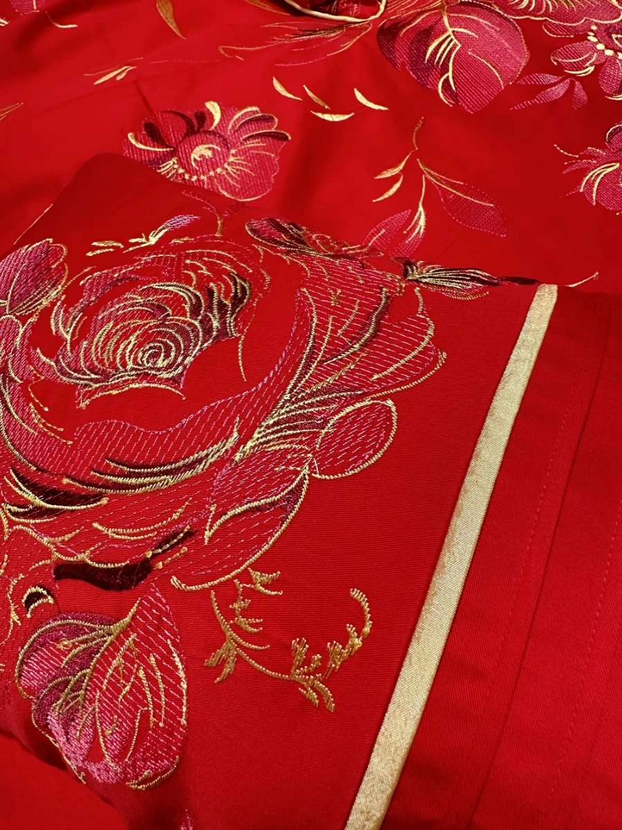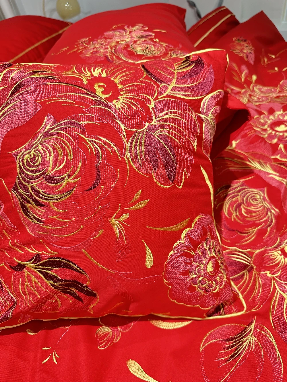 EASY Bedding Luxury Red Embroidered Floral Cotton Wedding Bedding Set (4-8 Pieces) – Original Design for a Glamorous Celebration