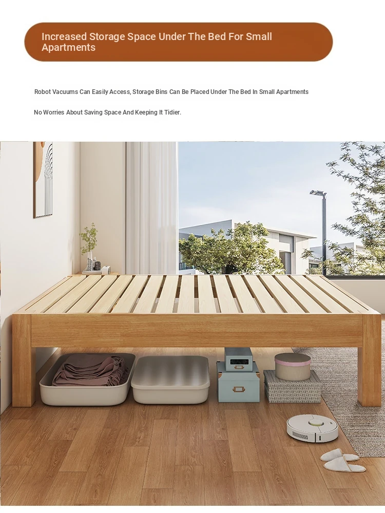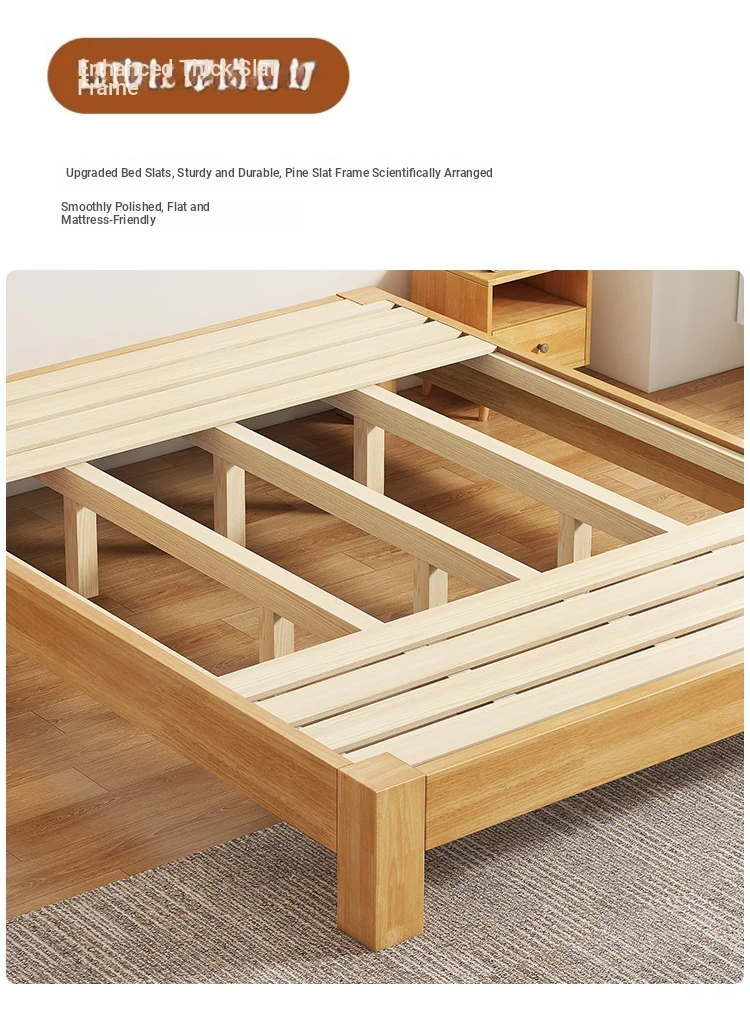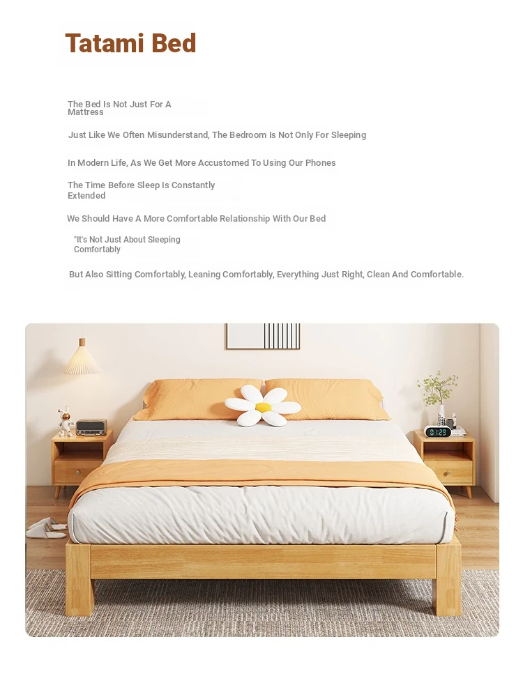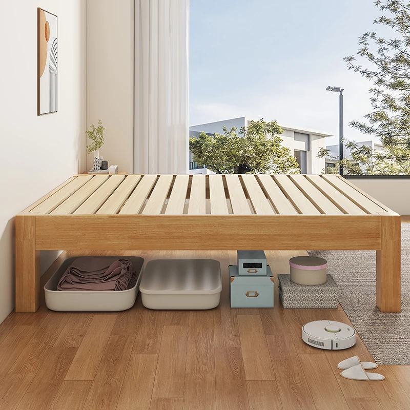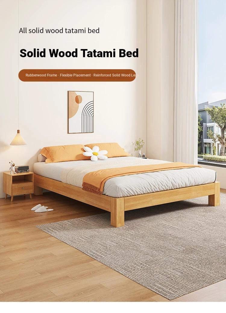 【Free Shipping to Hong Kong】Solid Wood Bed Frame without Headboard – Space-Saving Tatami Style for Small Apartments, Available in 1.2m and 1.5m Sizes – Perfect for Single Rooms!