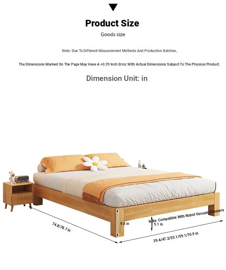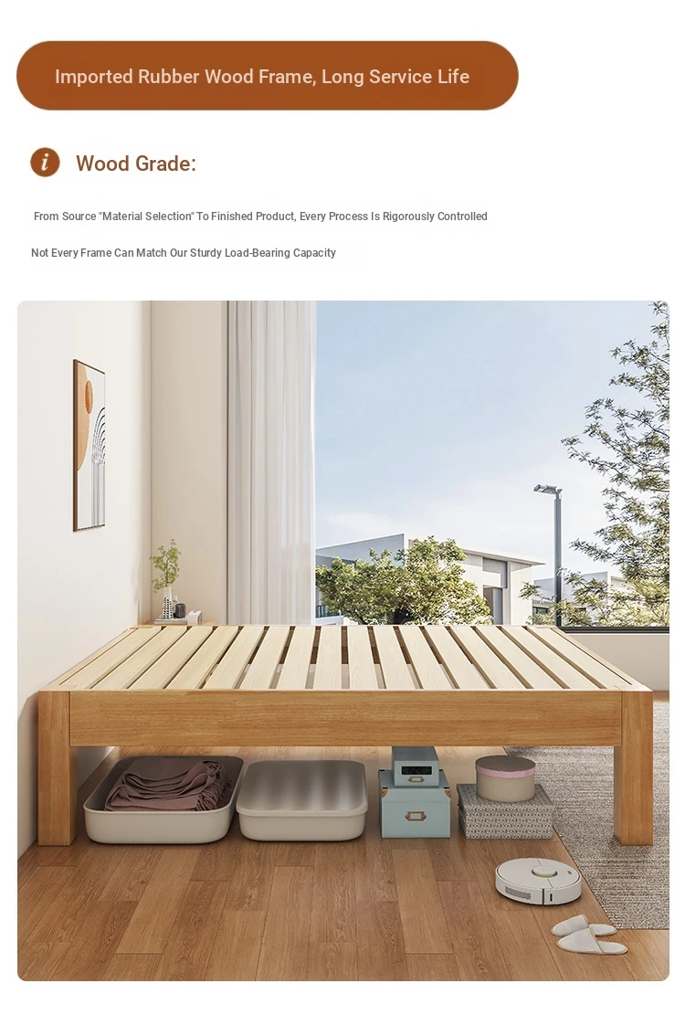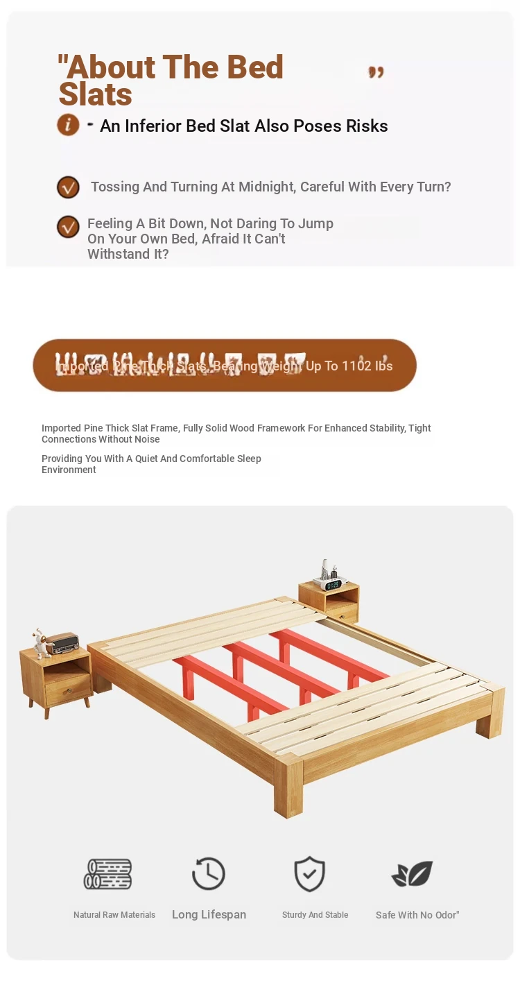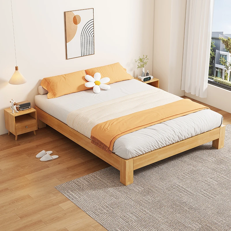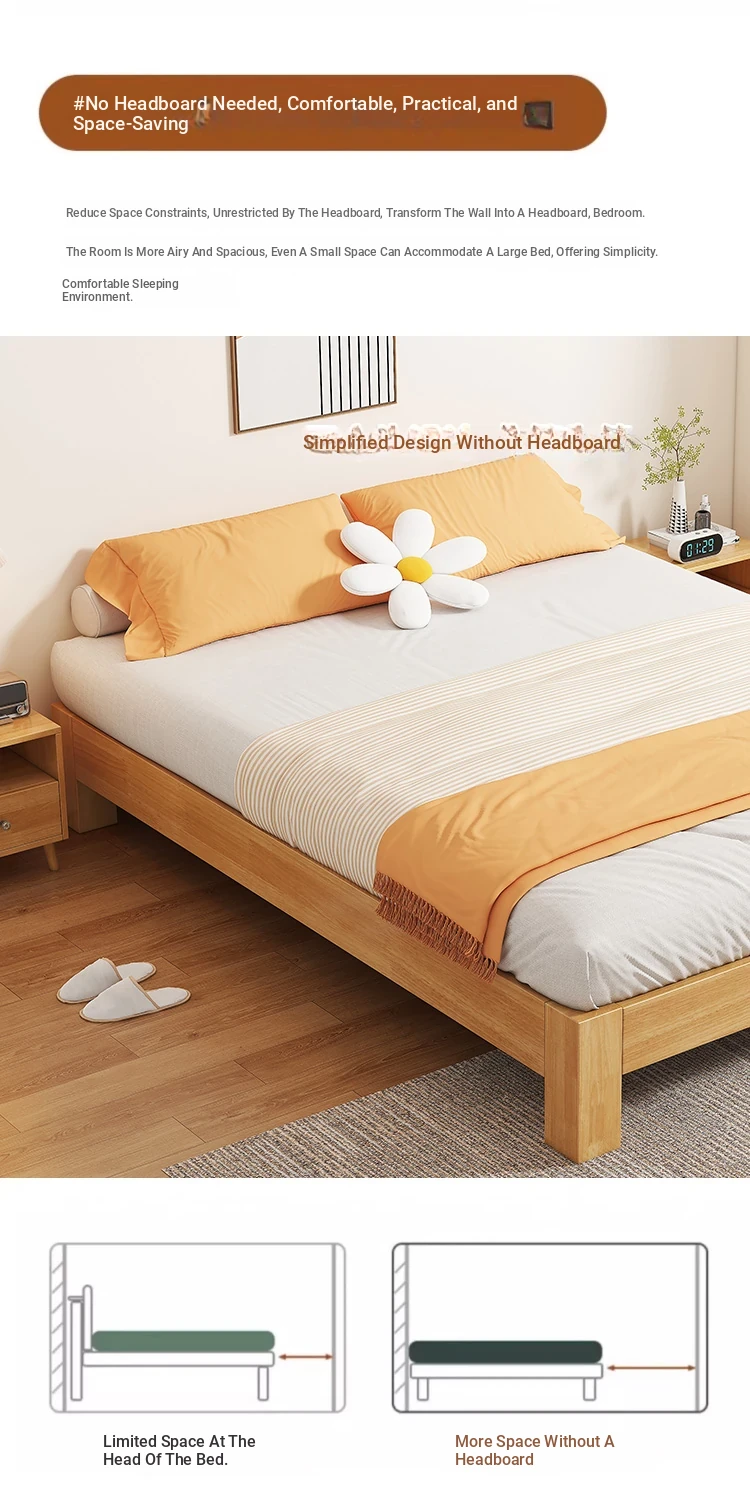 【Free Shipping to Hong Kong】Solid Wood Bed Frame without Headboard – Space-Saving Tatami Style for Small Apartments, Available in 1.2m and 1.5m Sizes – Perfect for Single Rooms!
