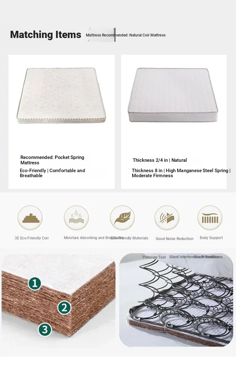 Single bed [bed height 15.75in] +3.94in Ridge protection Environmental-Friendly coconut palm mat-package installation