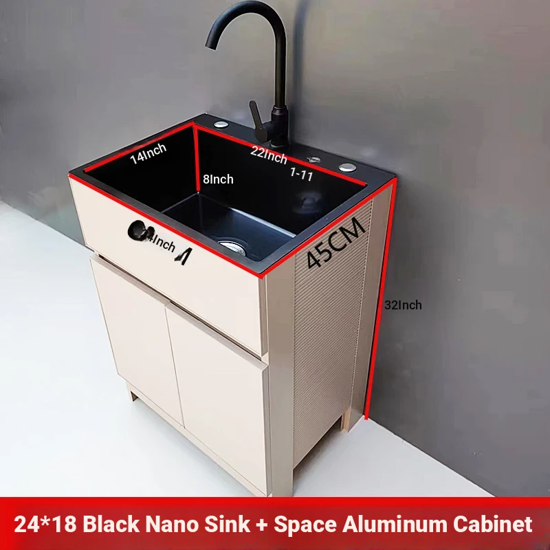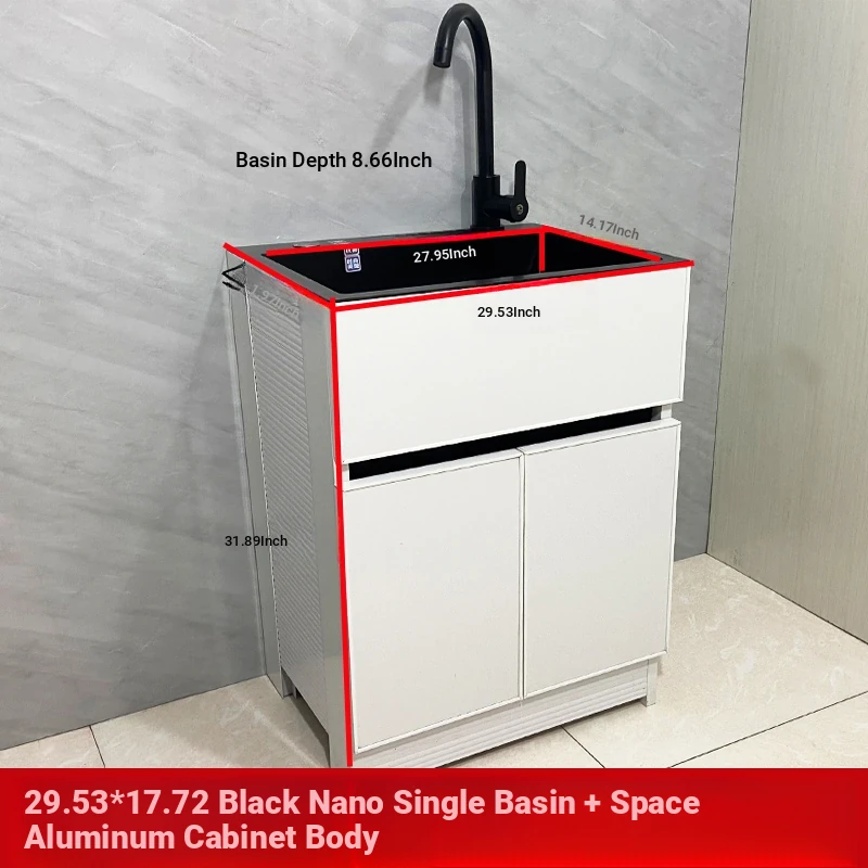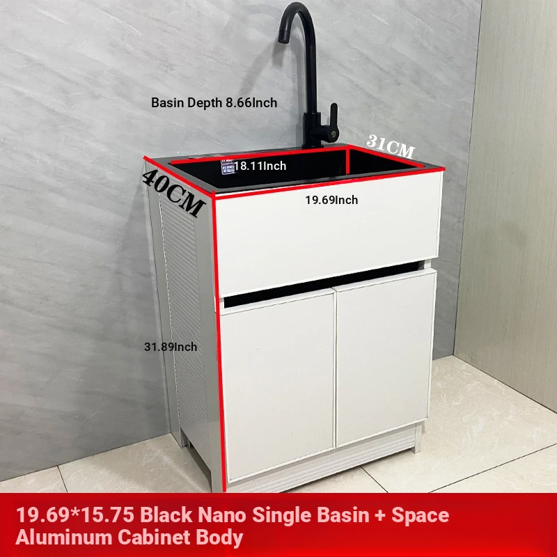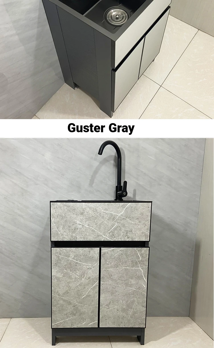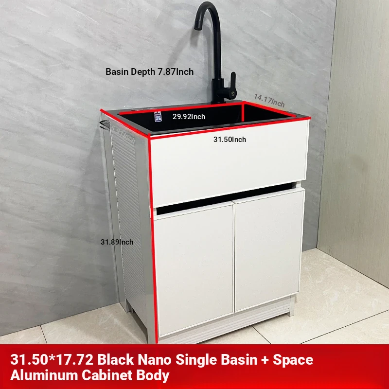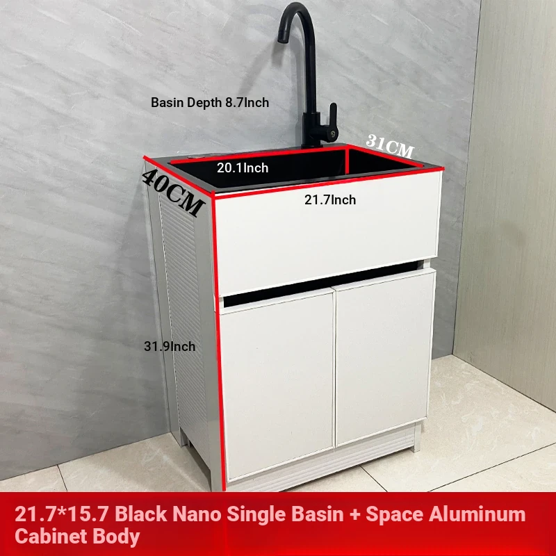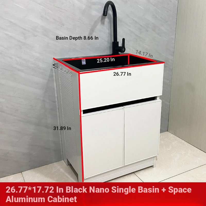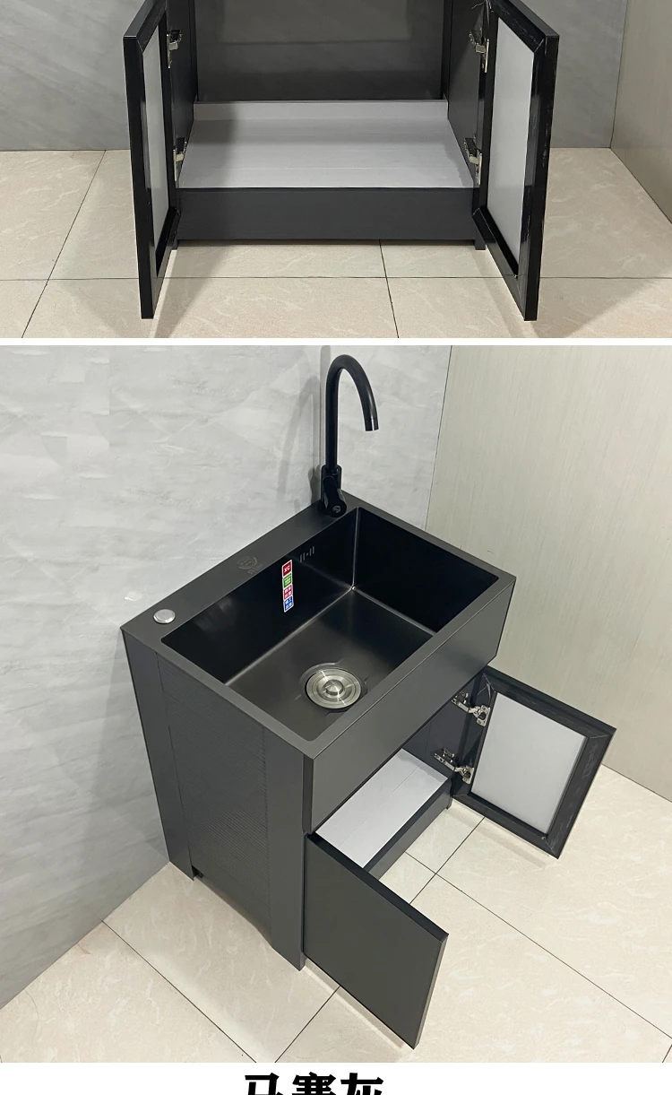 Outdoor Space Aluminum Laundry Cabinet with 304 Stainless Steel Sink – Freestanding Household Washbasin and Sink for Balcony Use, Stylish and Durable Design for Your Home