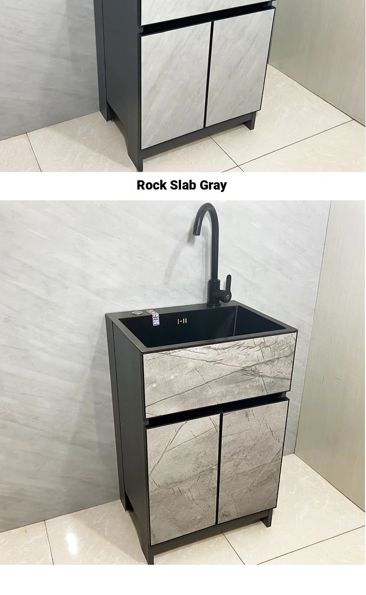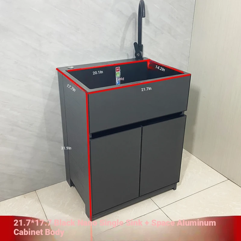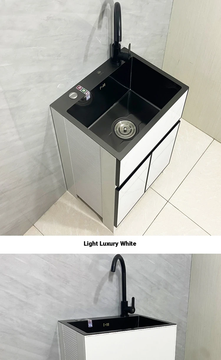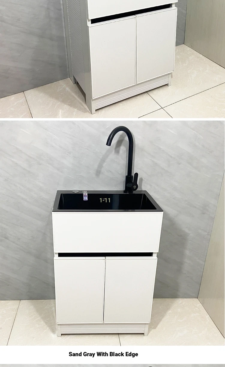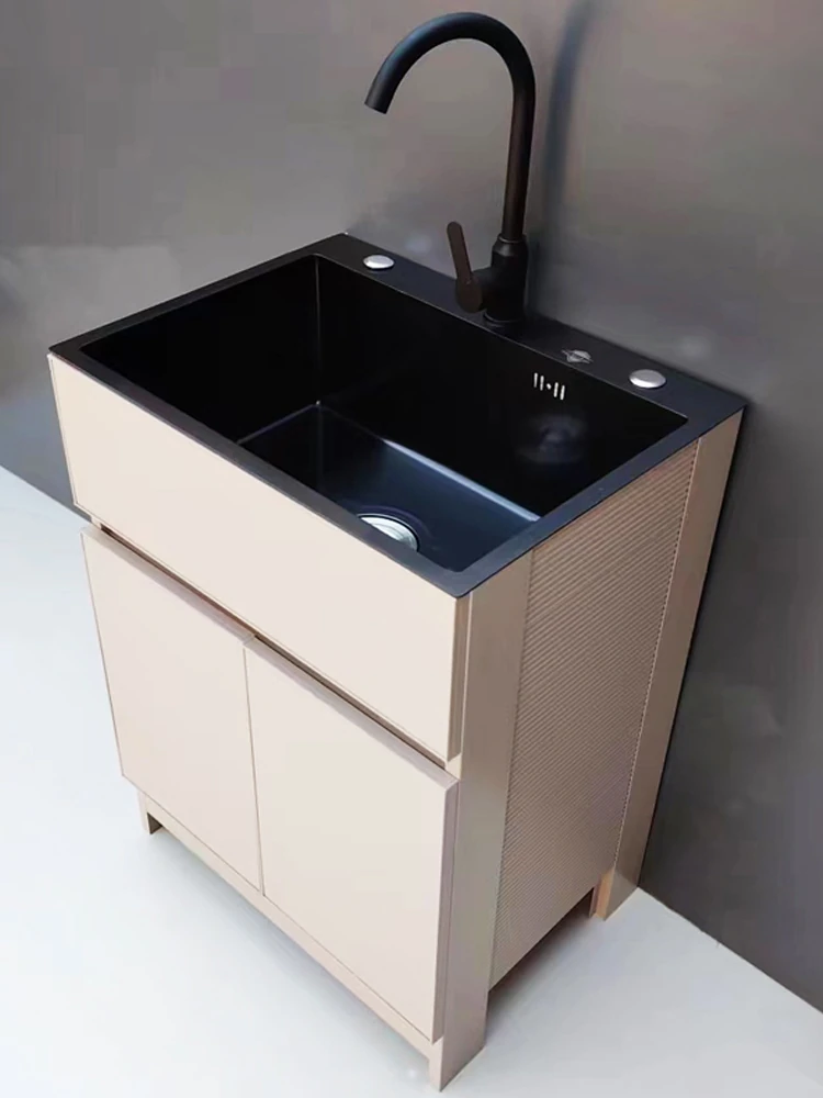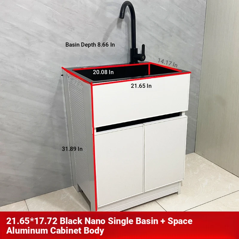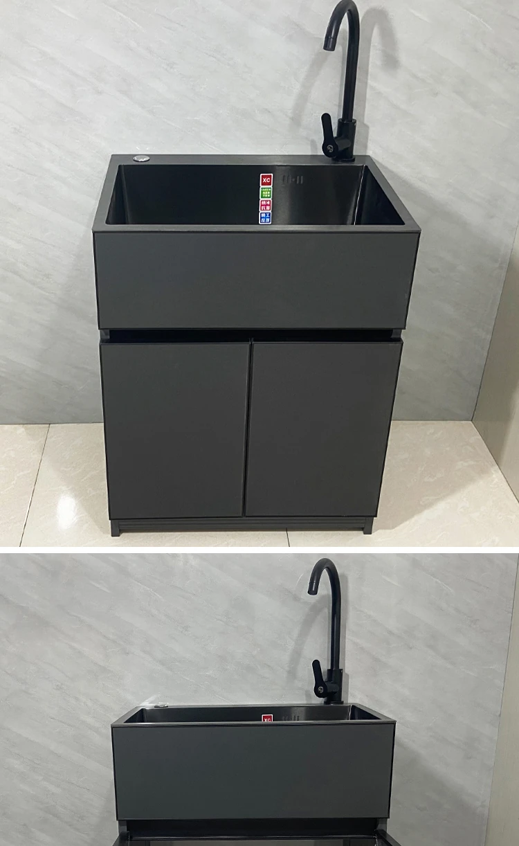 Outdoor Space Aluminum Laundry Cabinet with 304 Stainless Steel Sink – Freestanding Household Washbasin and Sink for Balcony Use, Stylish and Durable Design for Your Home