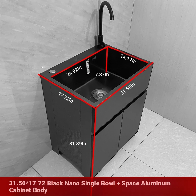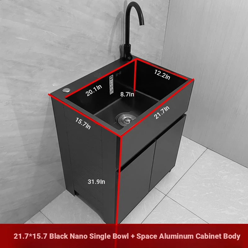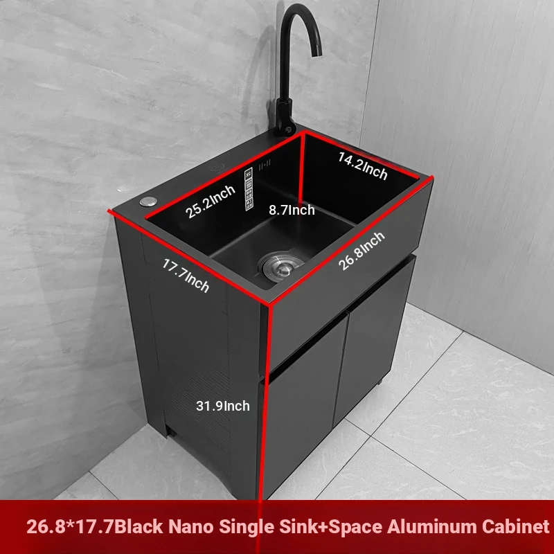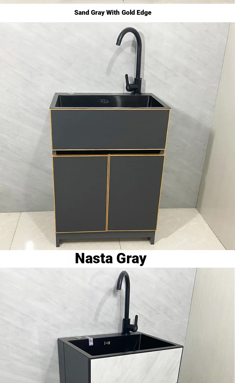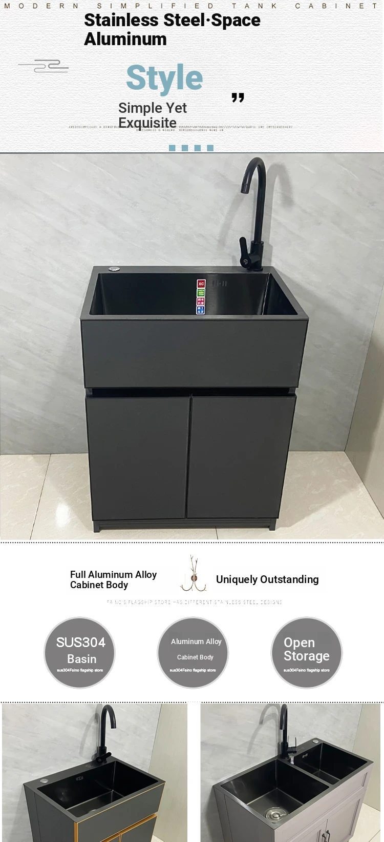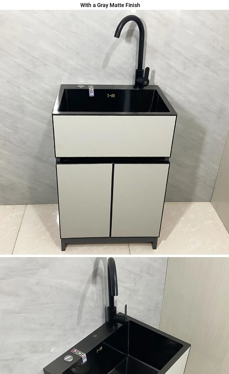 Outdoor Space Aluminum Laundry Cabinet with 304 Stainless Steel Sink – Freestanding Household Washbasin and Sink for Balcony Use, Stylish and Durable Design for Your Home