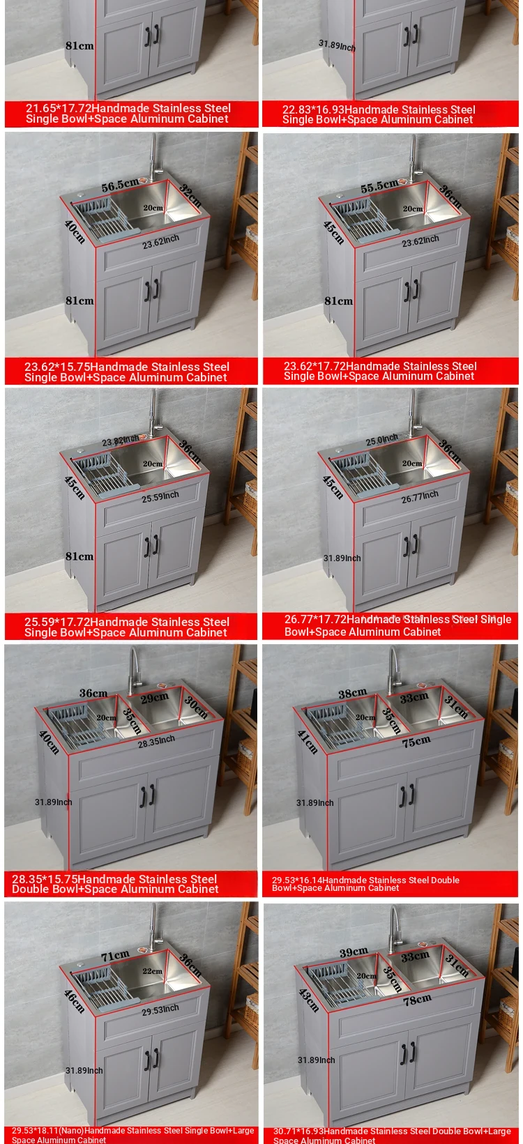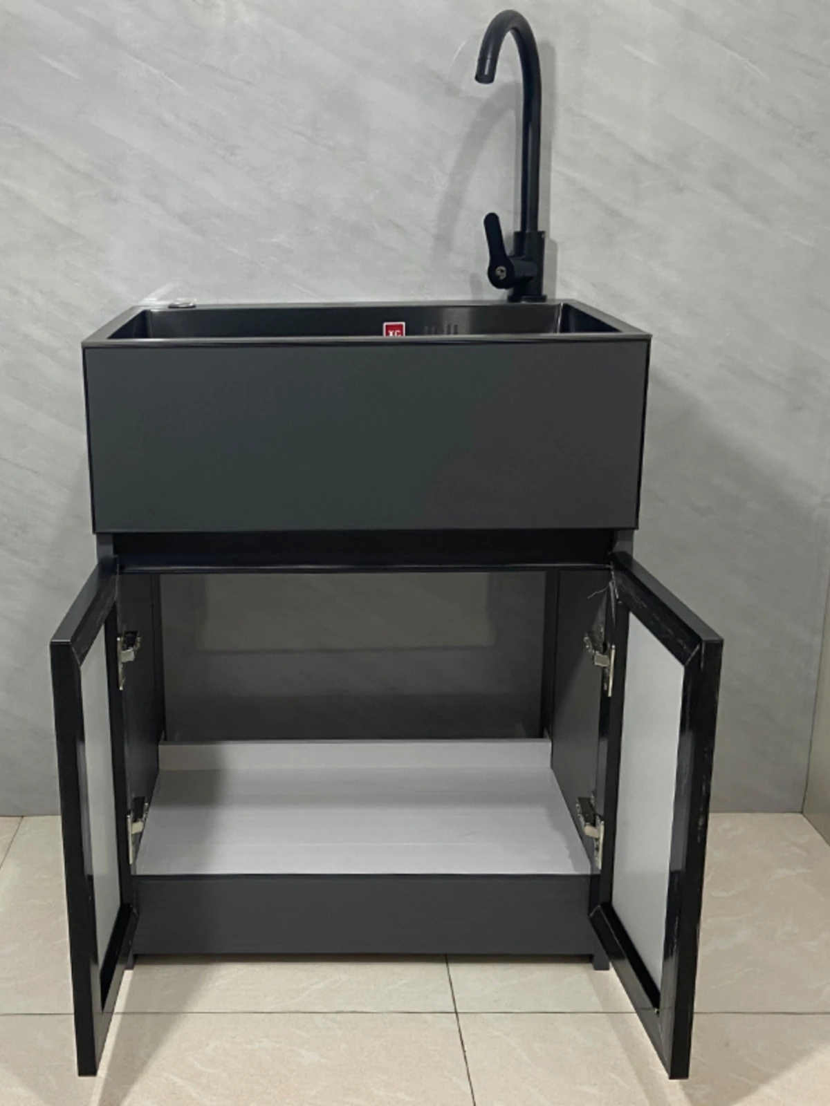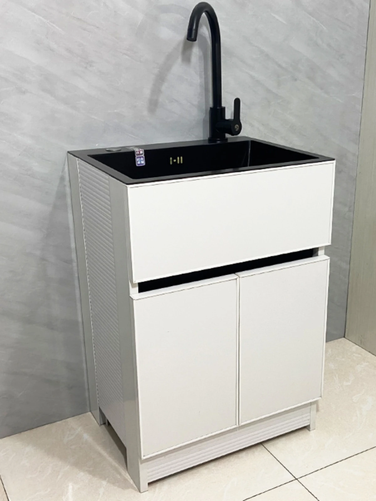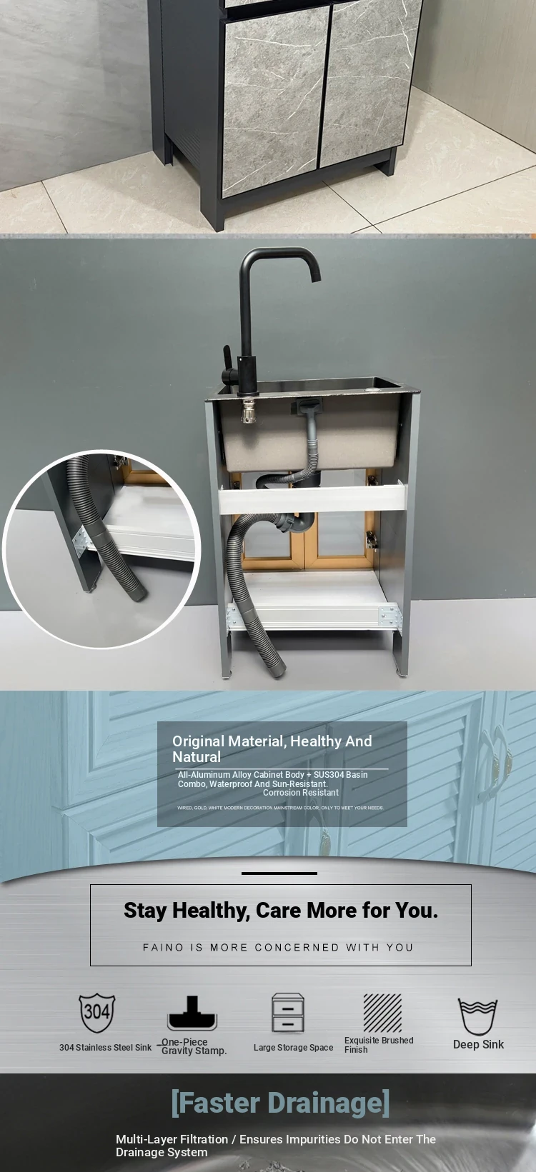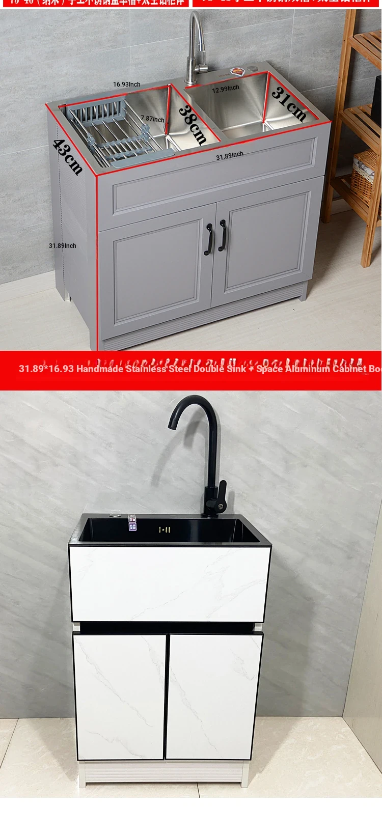 Outdoor Space Aluminum Laundry Cabinet with 304 Stainless Steel Sink – Freestanding Household Washbasin and Sink for Balcony Use, Stylish and Durable Design for Your Home