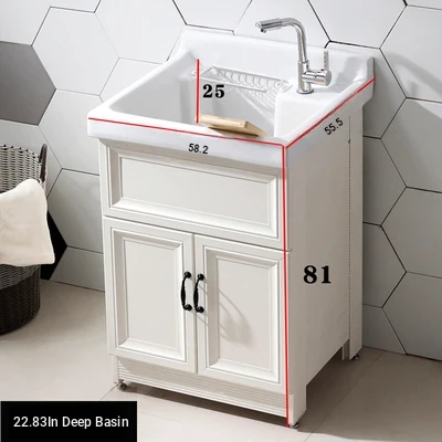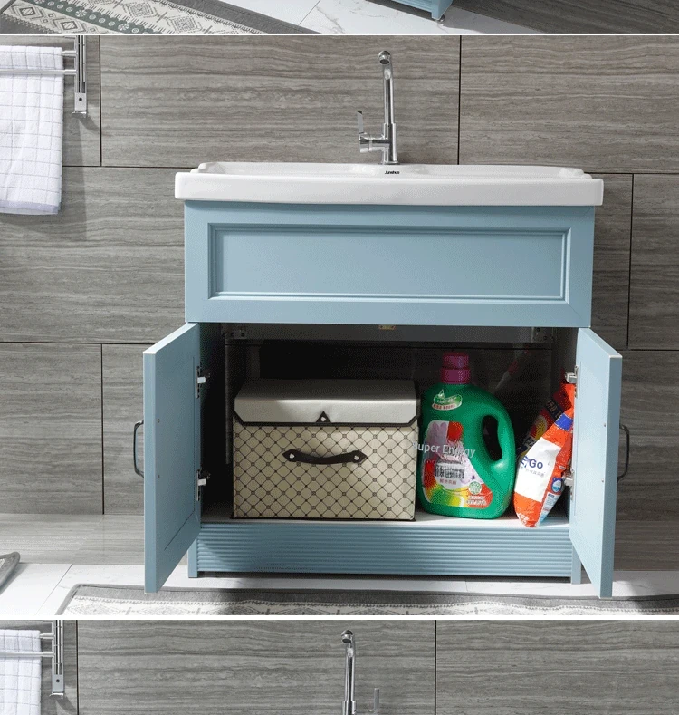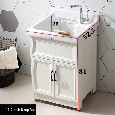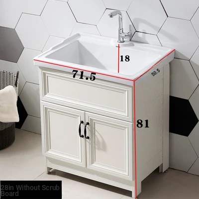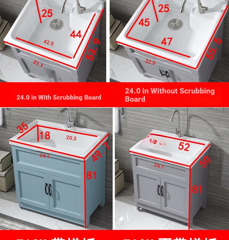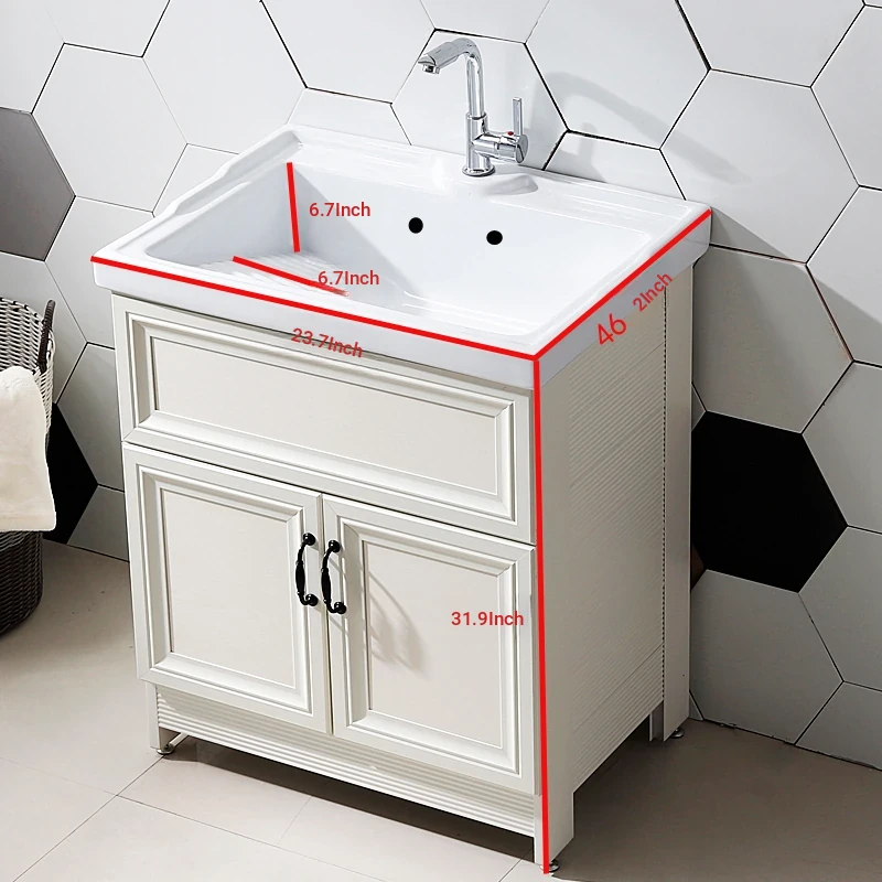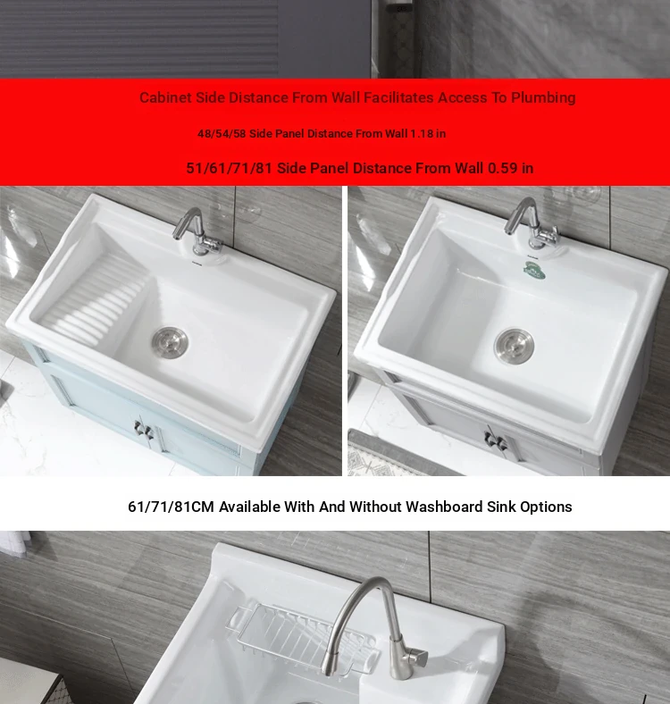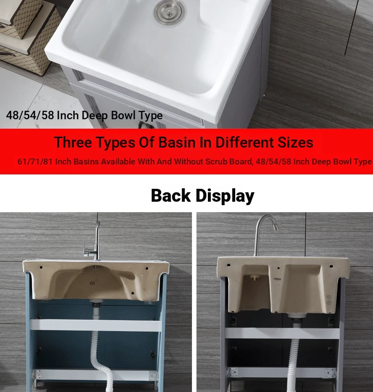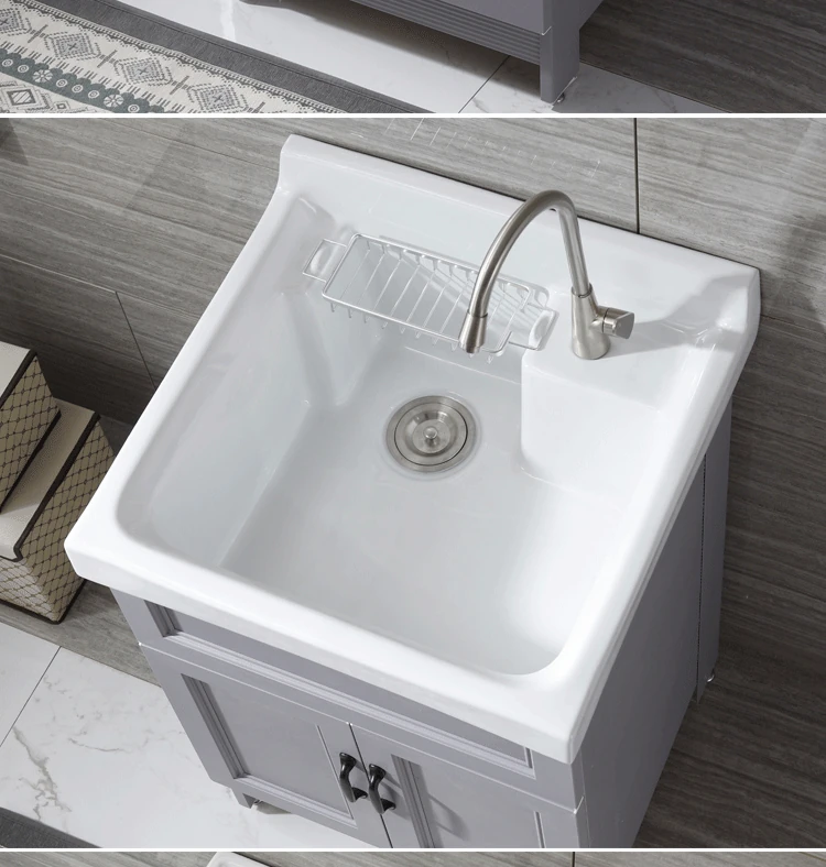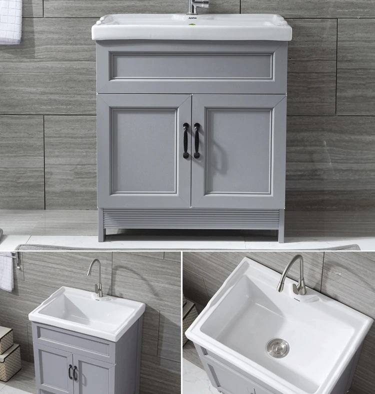 Space Aluminum Laundry Cabinet with Ceramic Sink and Scrub Board - Outdoor Free-Standing Balcony Laundry Sink and Integrated Basin for Wash and Handwashing.
