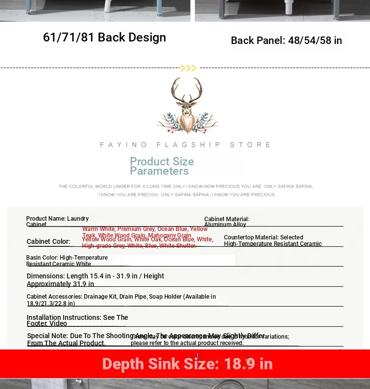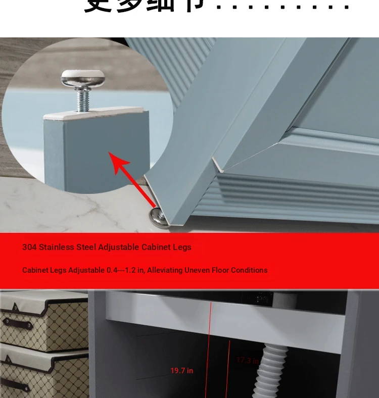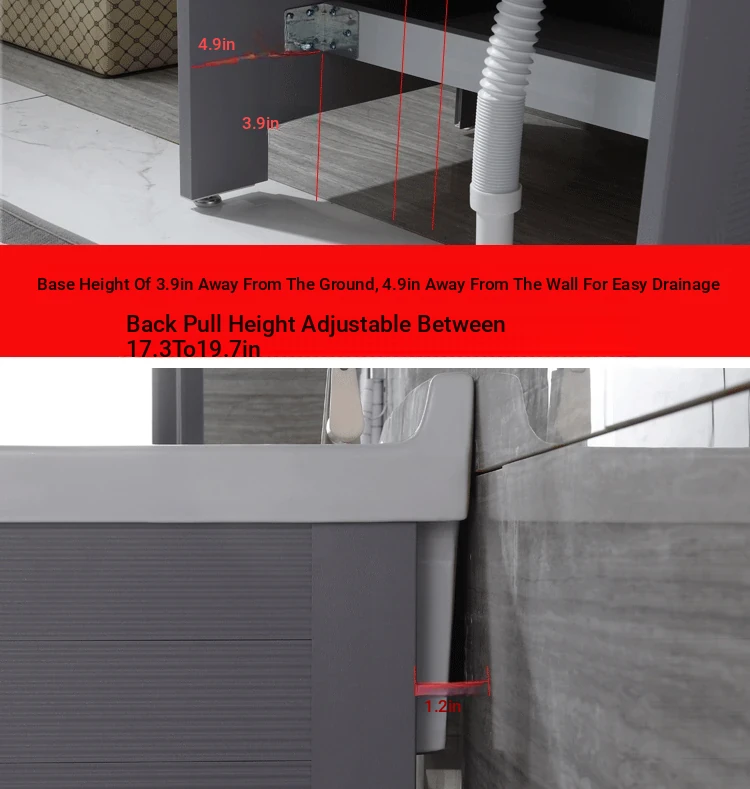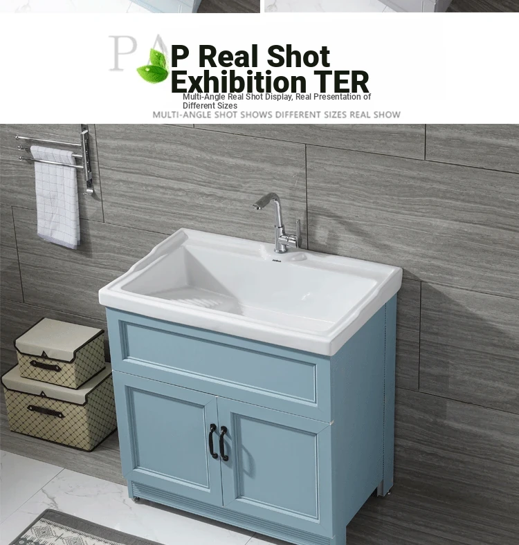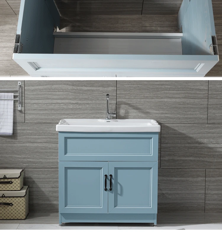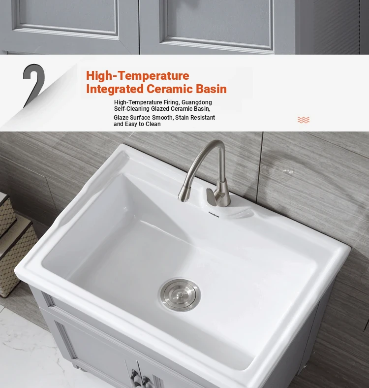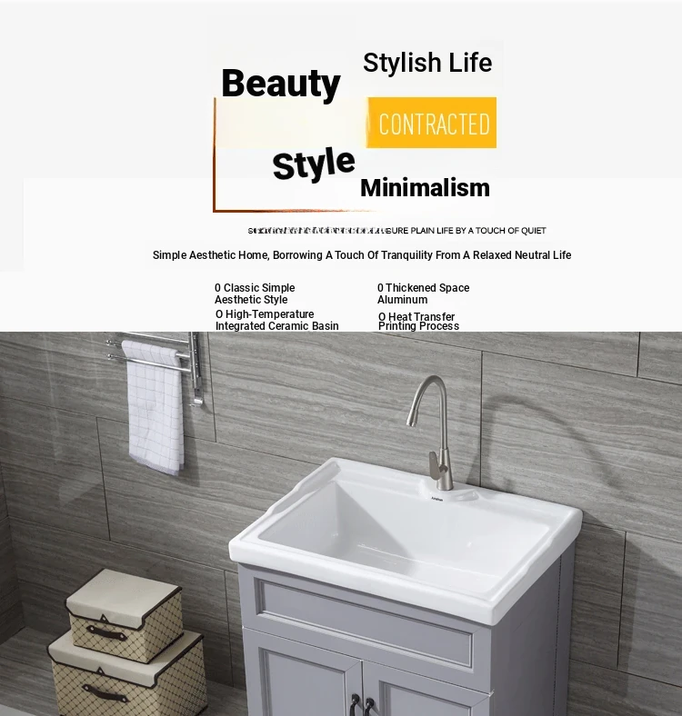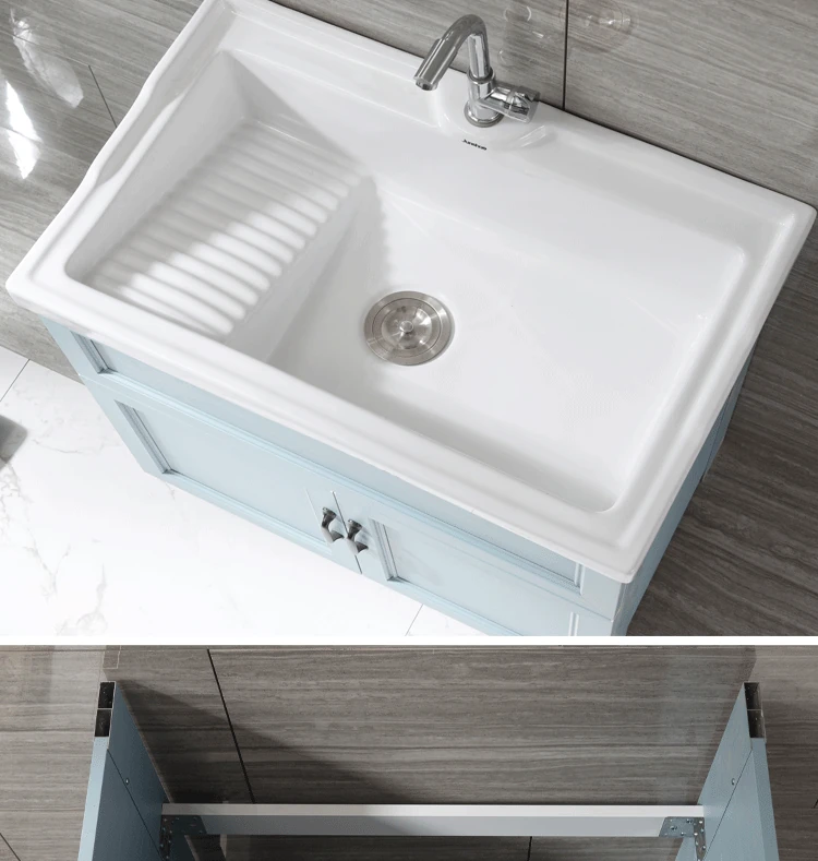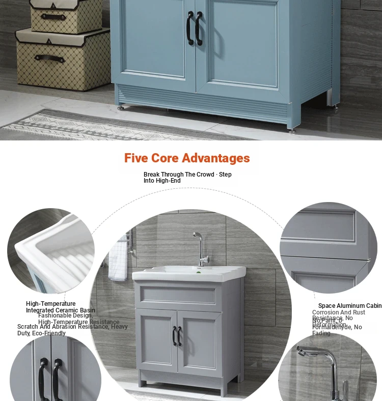 Space Aluminum Laundry Cabinet with Ceramic Sink and Scrub Board - Outdoor Free-Standing Balcony Laundry Sink and Integrated Basin for Wash and Handwashing.