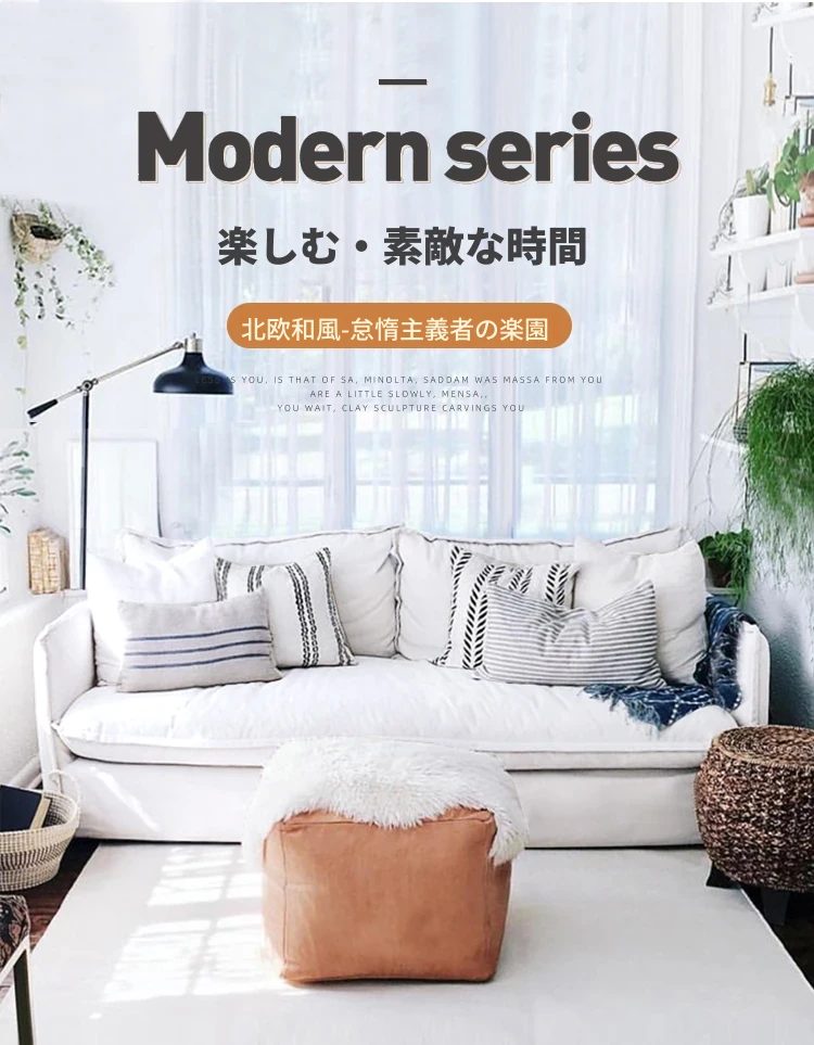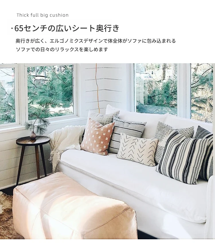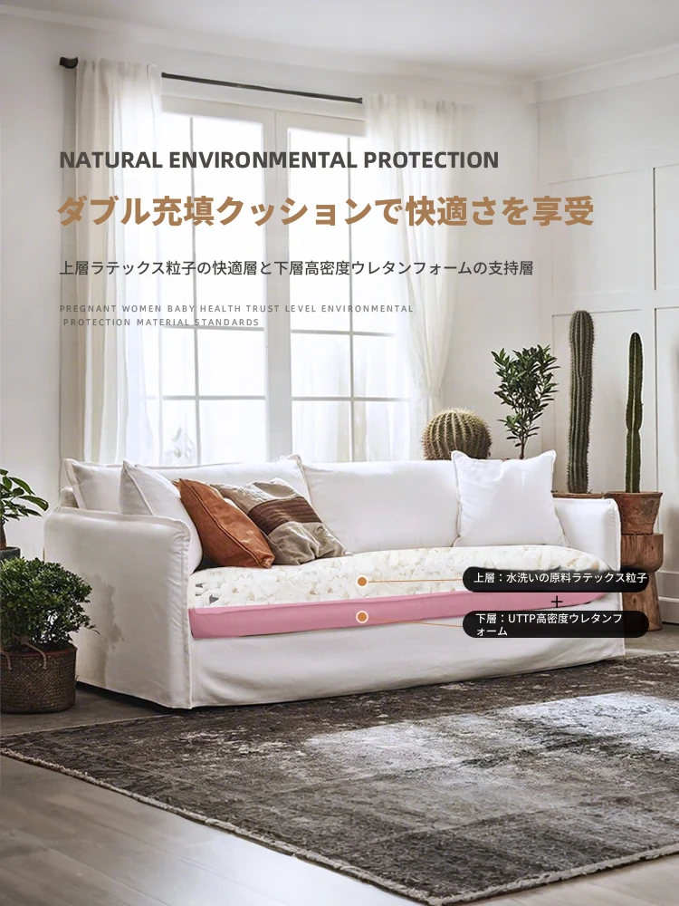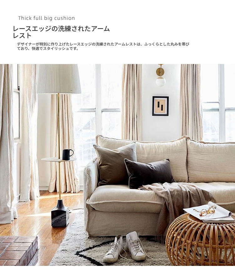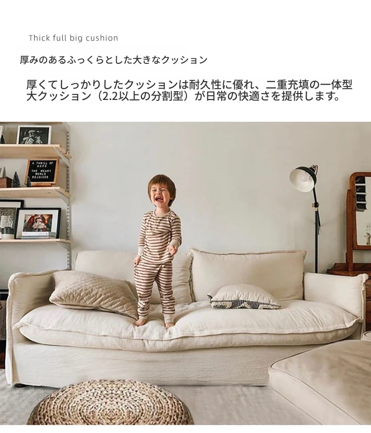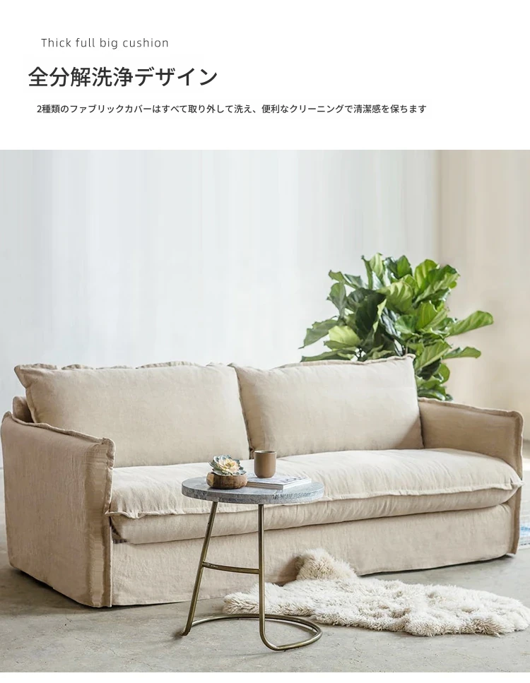 北欧風デザインの超柔らかいダブルソファ!ラテックスとフェザーを使用した、シンプルでおしゃれな日本風クリーム色のソファ。小さなアパートに最適なリビングのアクセントに!