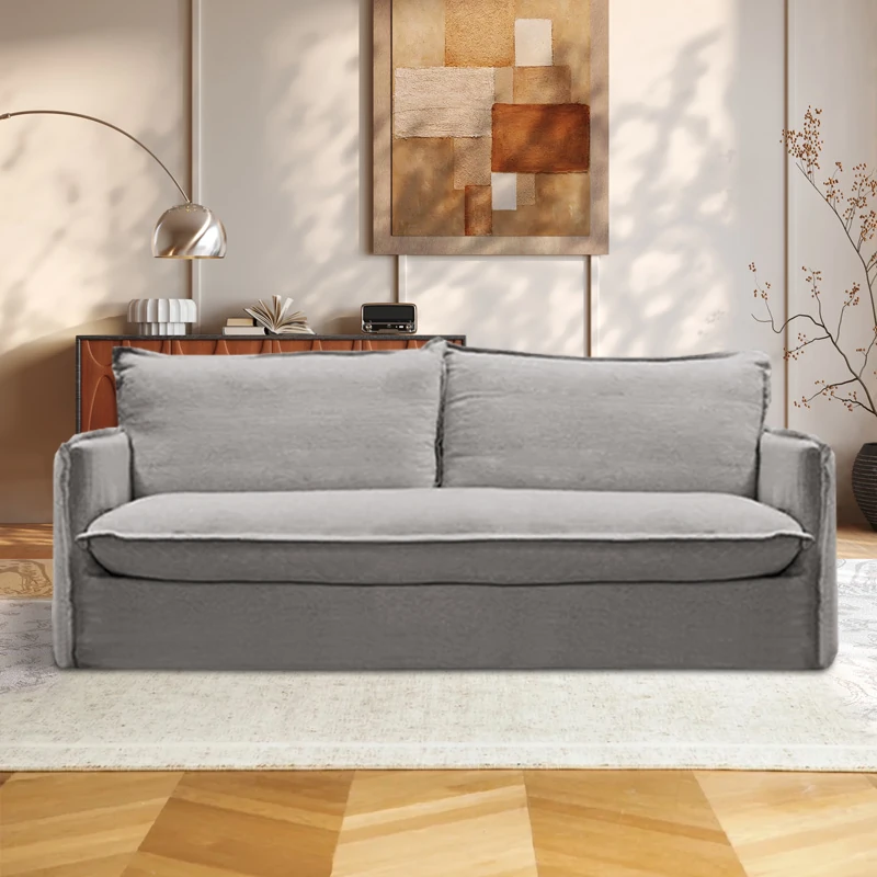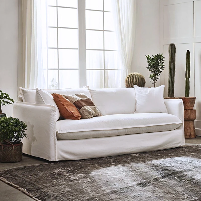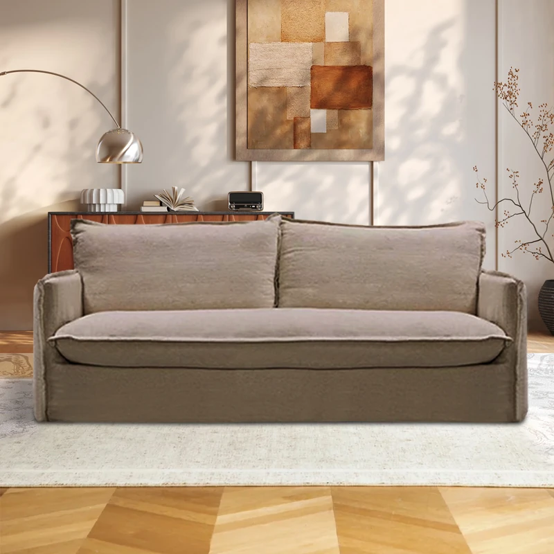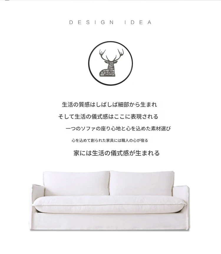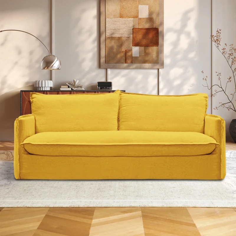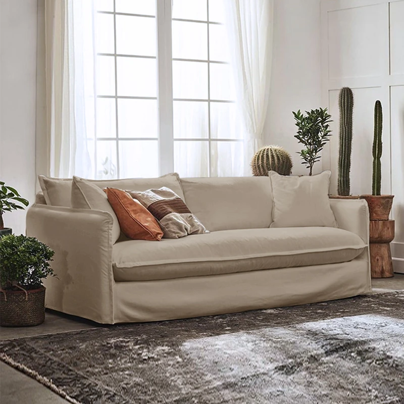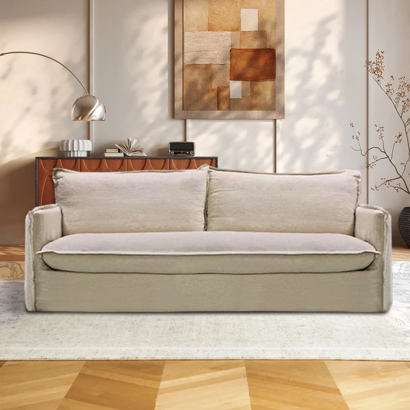 北欧風デザインの超柔らかいダブルソファ!ラテックスとフェザーを使用した、シンプルでおしゃれな日本風クリーム色のソファ。小さなアパートに最適なリビングのアクセントに!