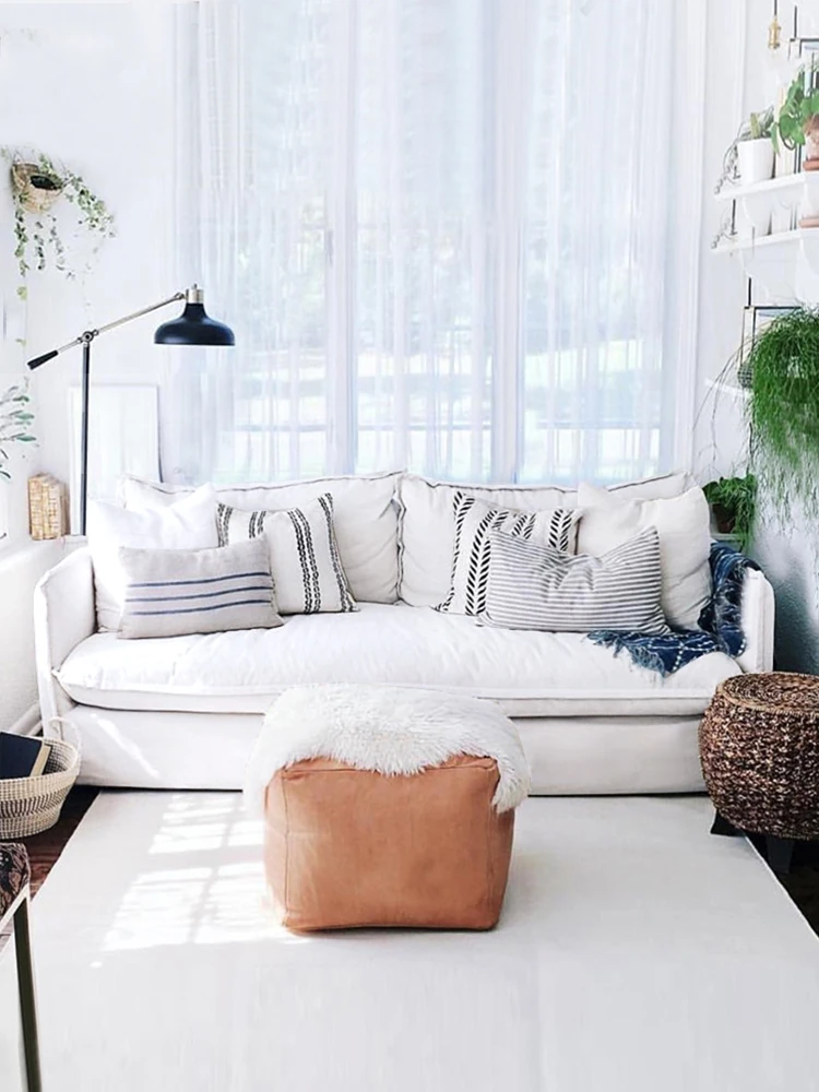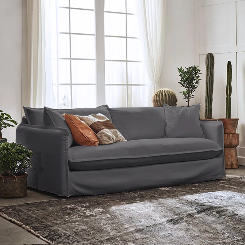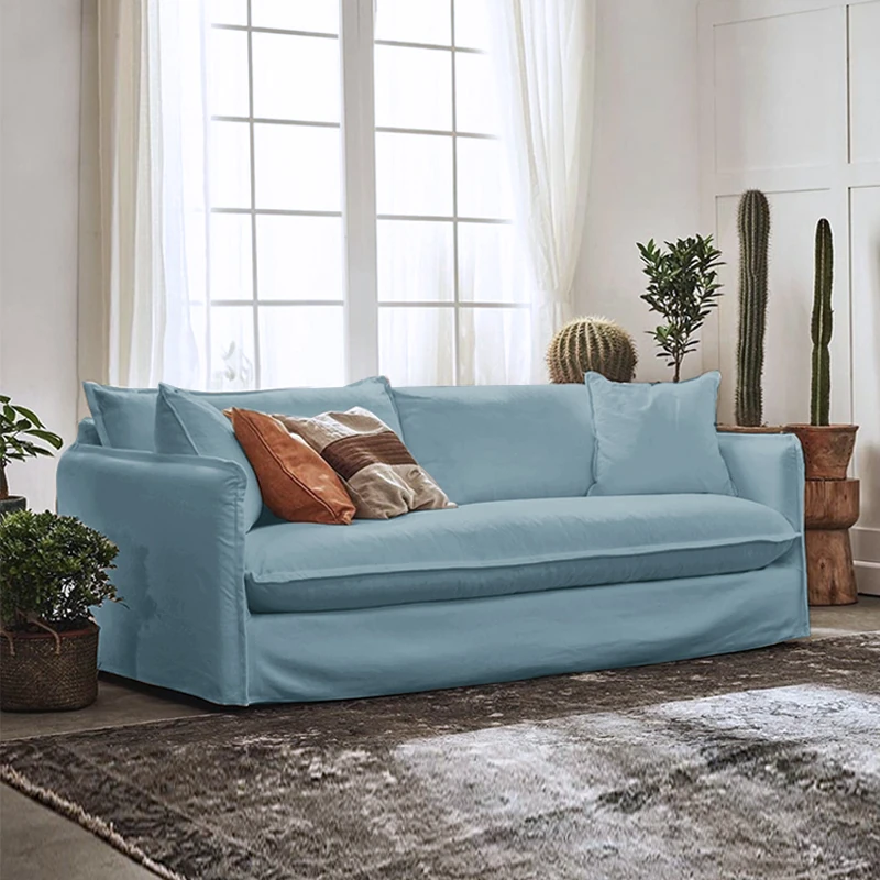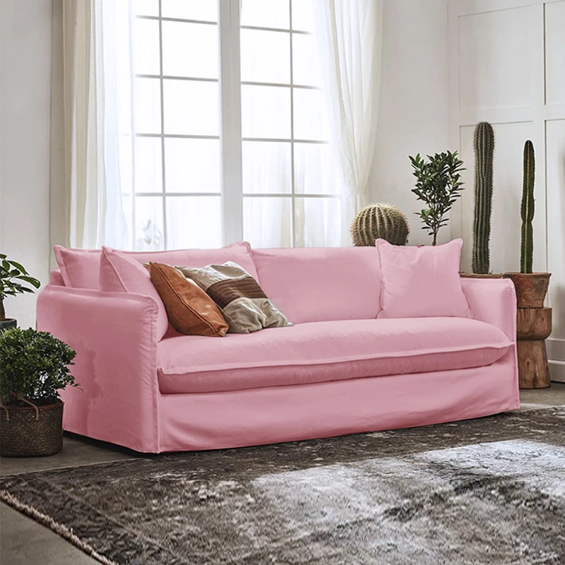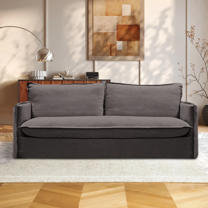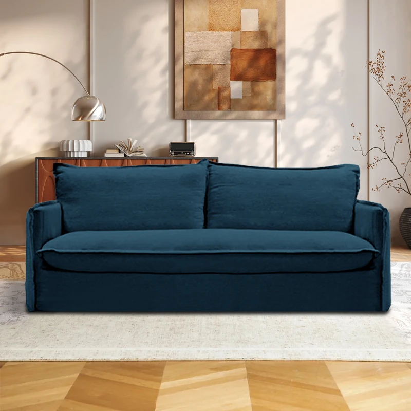 北欧風デザインの超柔らかいダブルソファ!ラテックスとフェザーを使用した、シンプルでおしゃれな日本風クリーム色のソファ。小さなアパートに最適なリビングのアクセントに!