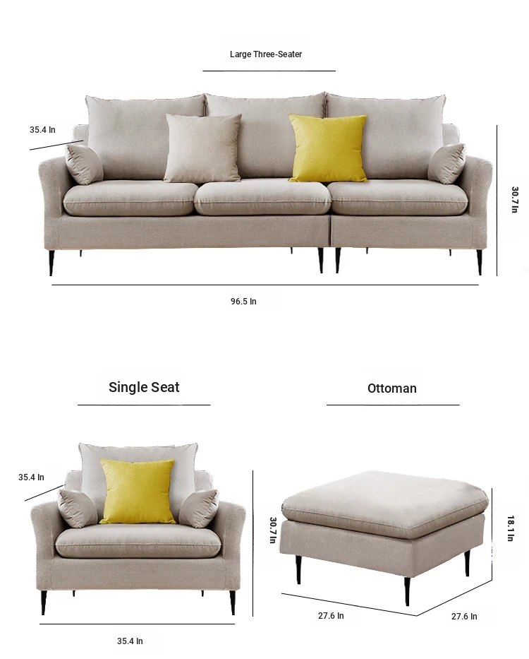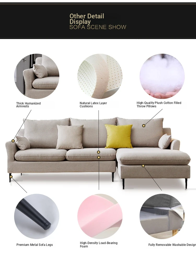 北欧スタイルの小型ソファ|ラテックスダブル、三人掛けソファ|シンプルでモダンな布張り|リビングルームにぴったりなコーナーカウチ&フェイスタイプ!快適な座り心地を実現!