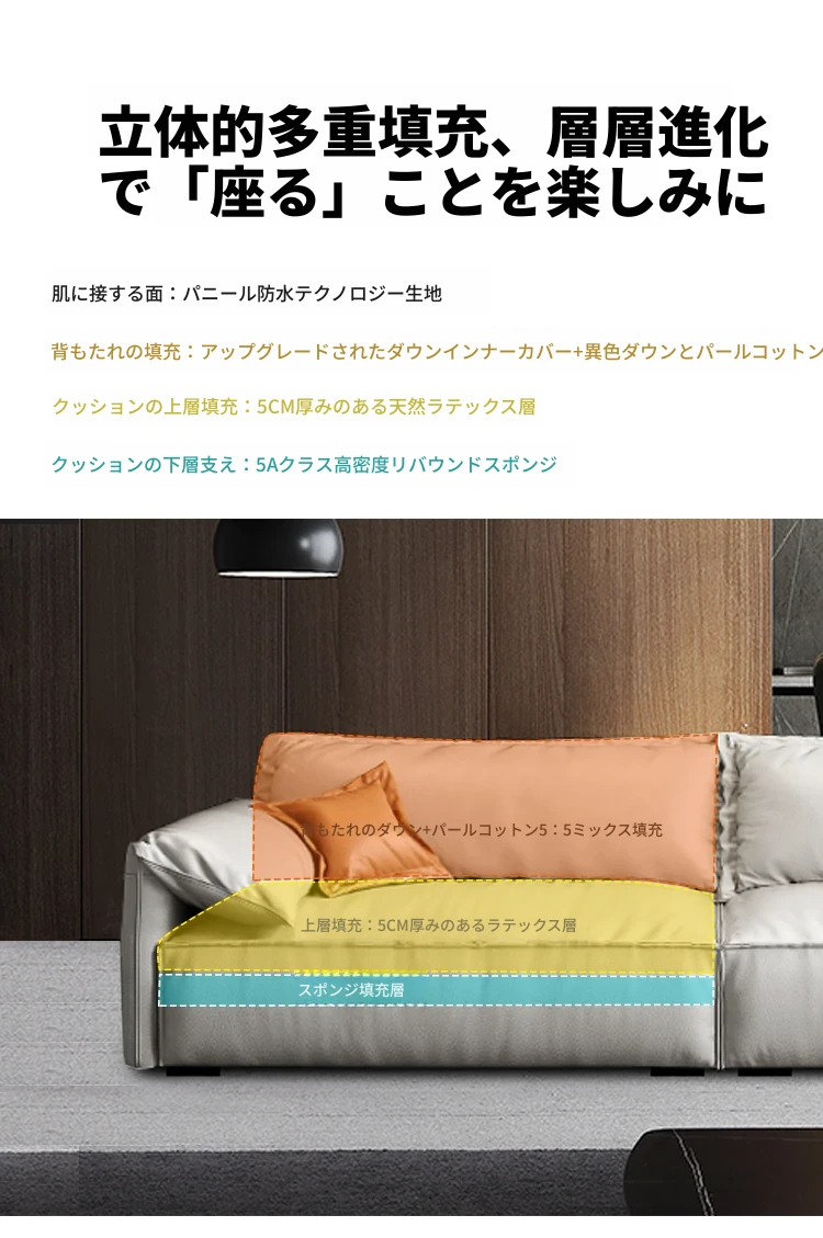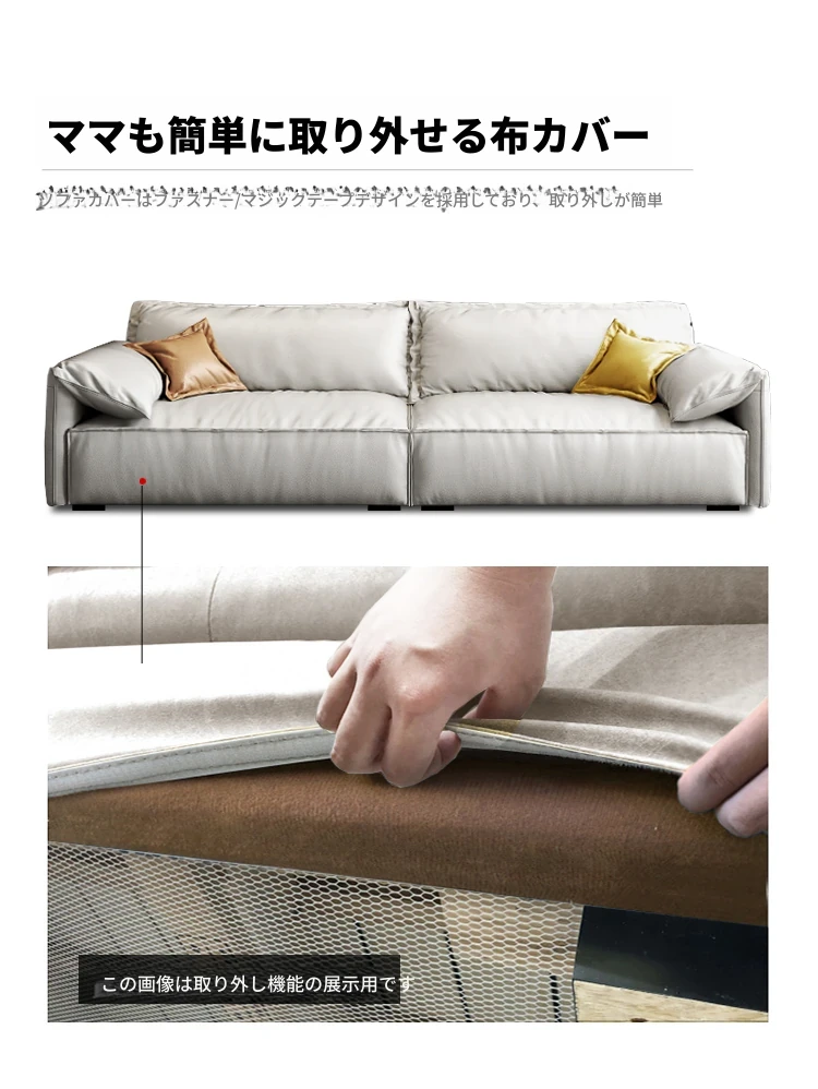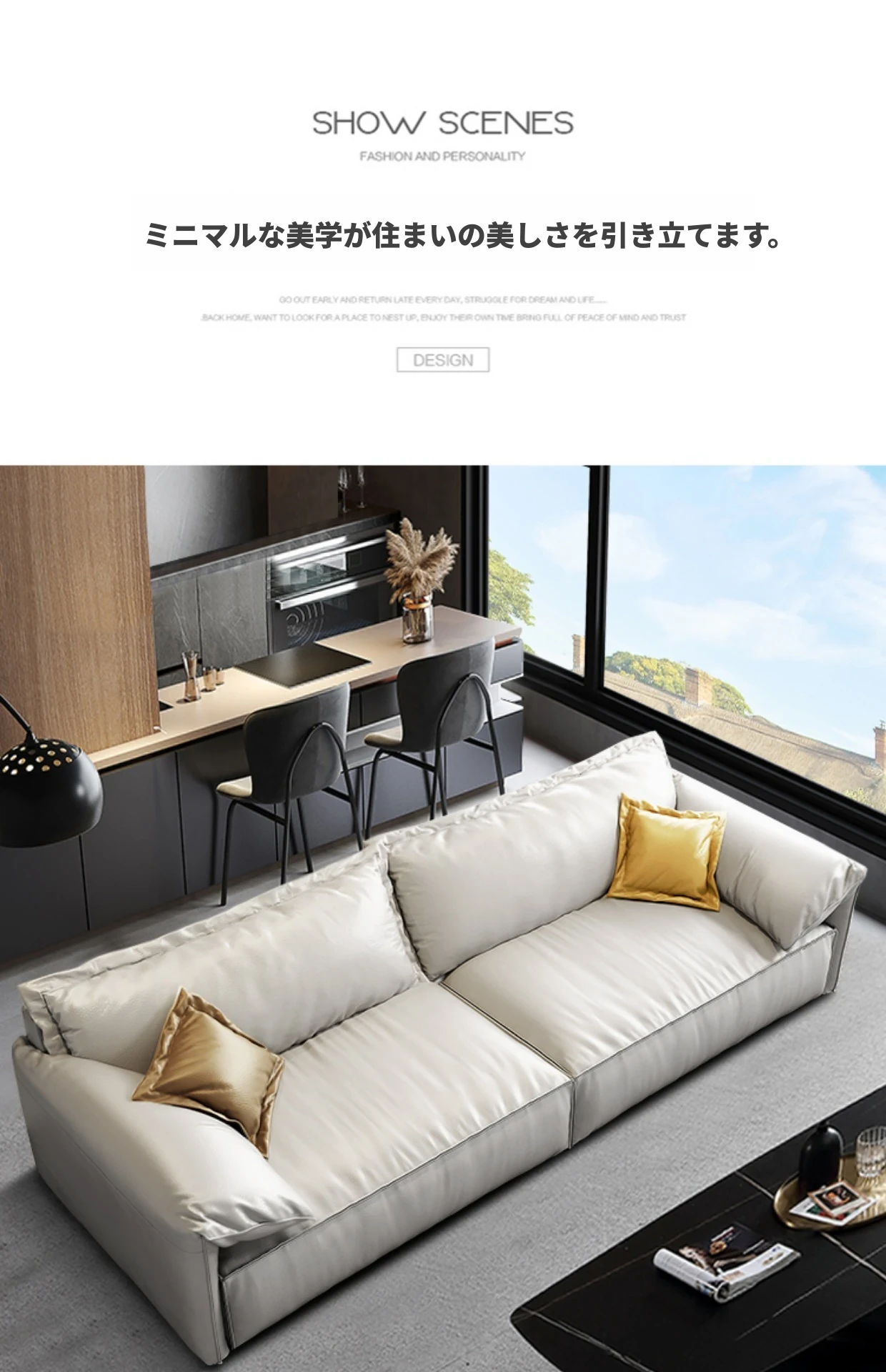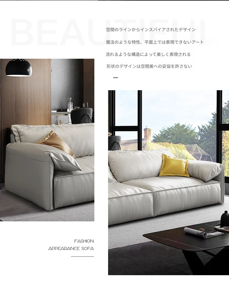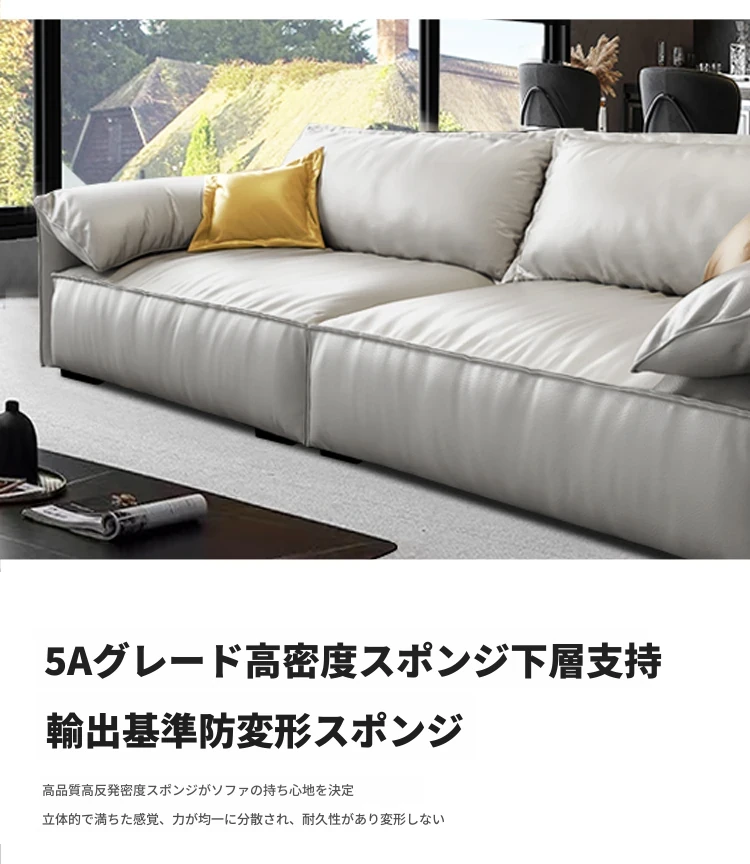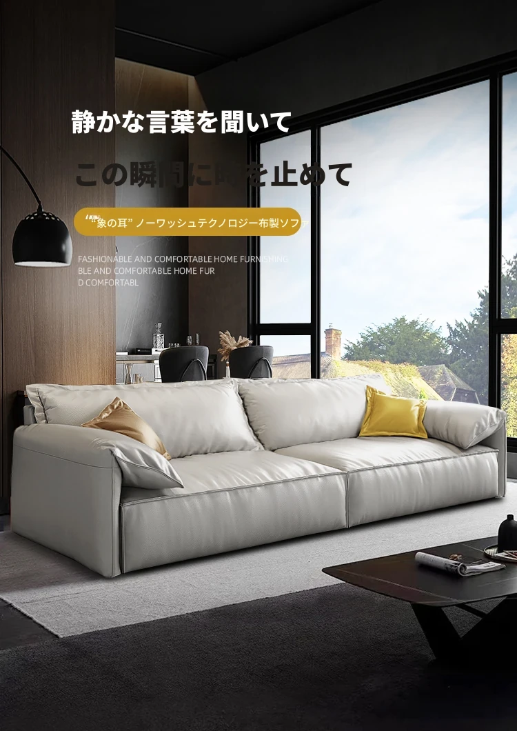 エレガントな大耳象ソファ|リビング用2人掛け・3人掛け|ハイテク素材でお手入れ簡単|小さな部屋にもピッタリ!モダンなシンプルスタイルのクリーム色ソファで、心地よい空間を演出します。