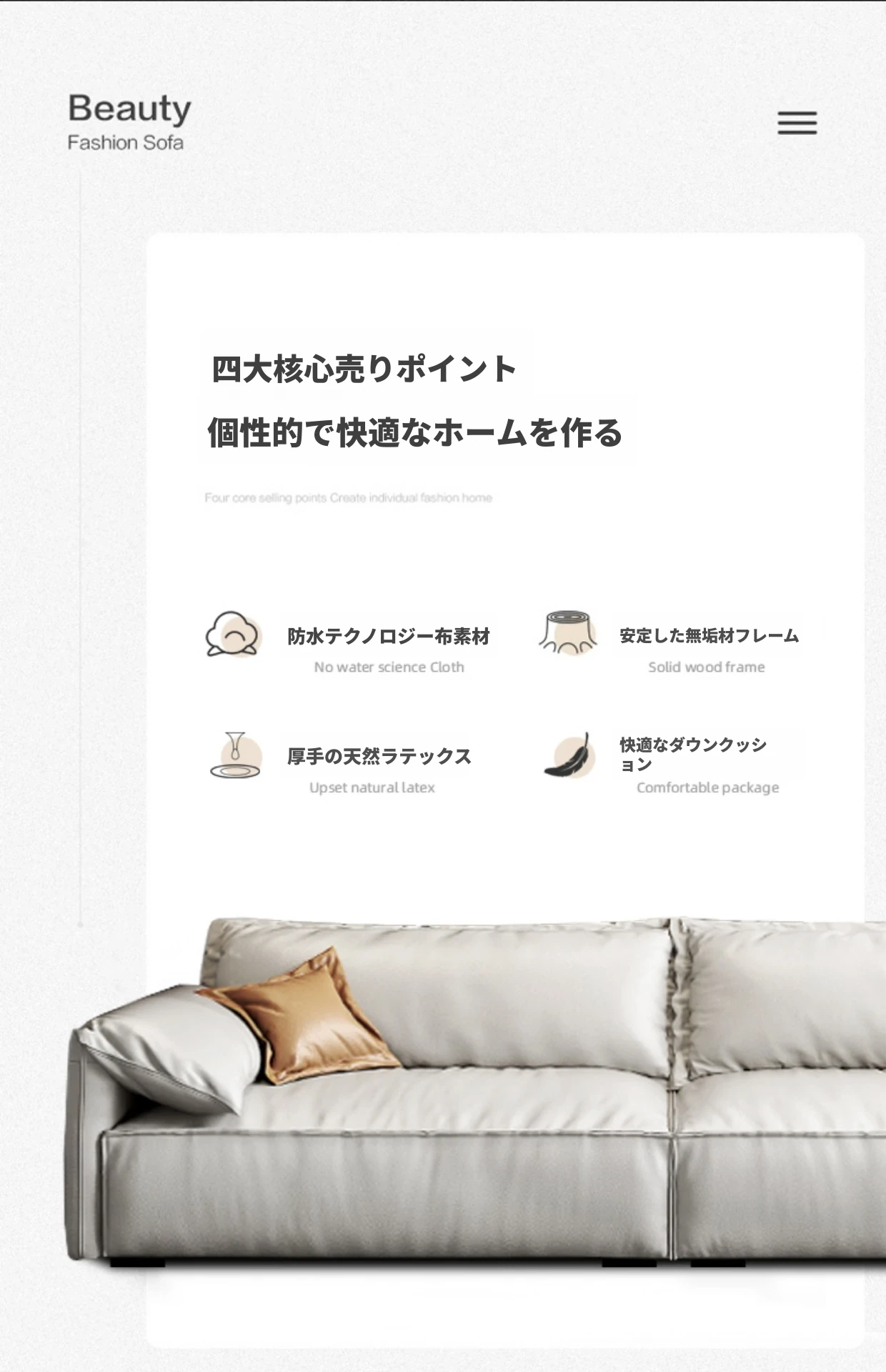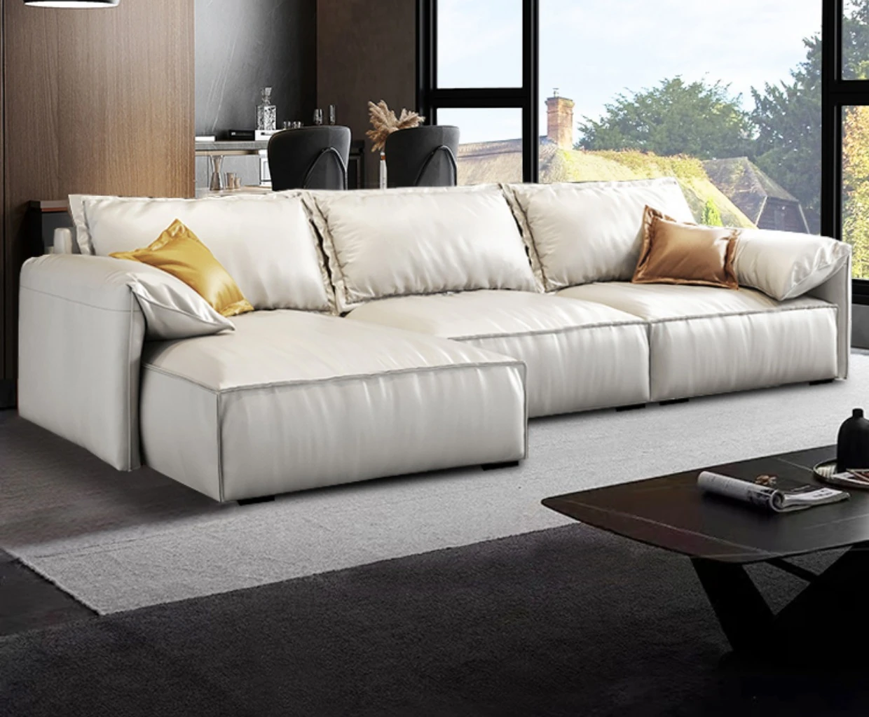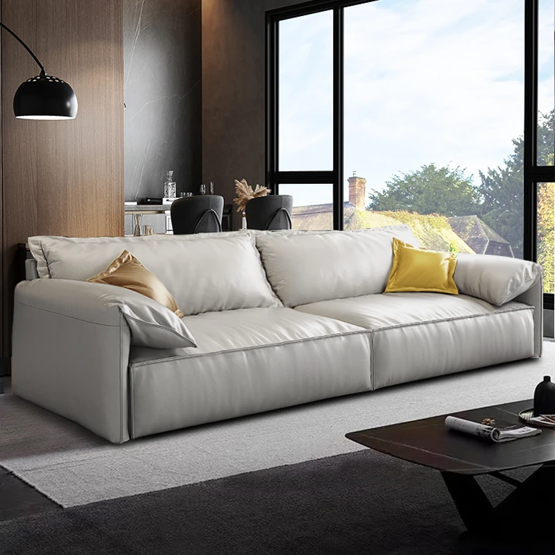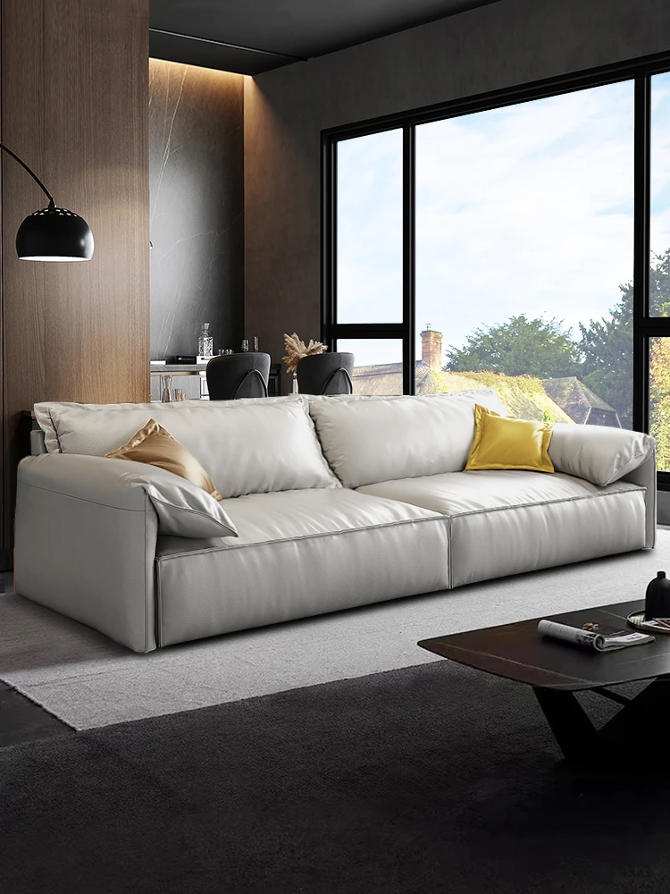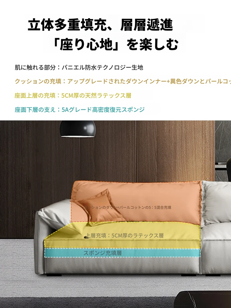 エレガントな大耳象ソファ|リビング用2人掛け・3人掛け|ハイテク素材でお手入れ簡単|小さな部屋にもピッタリ!モダンなシンプルスタイルのクリーム色ソファで、心地よい空間を演出します。